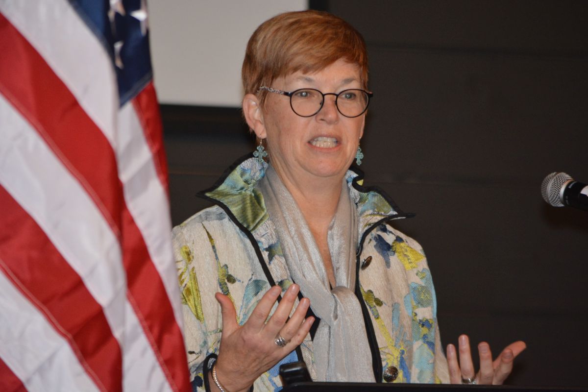 Executive Director Christina Watson speaks to guests at the Soldiers and Families Embraced (SAFE) fundraising breakfast on, Thur. Mar. 10. (Lee Erwin).