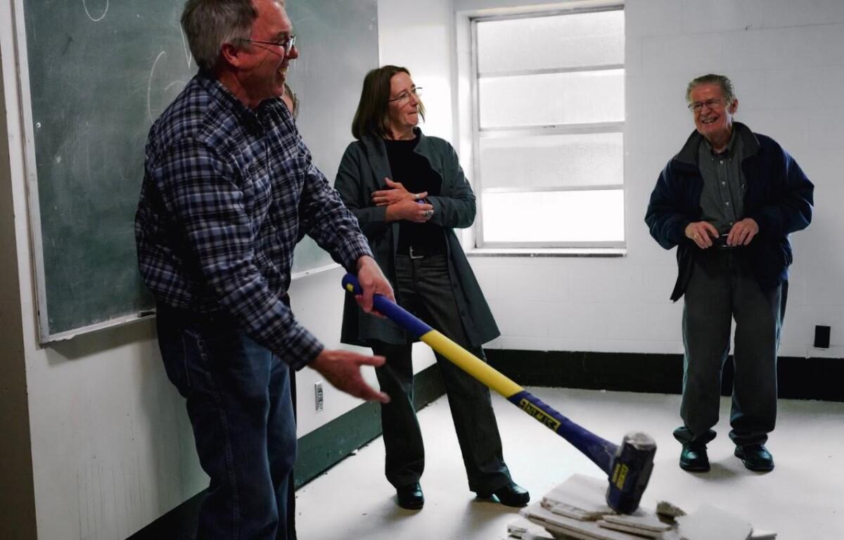 In recent ceremonies, her team, Clarksville Mayor Joe Pitts and Montgomery County Mayor Wes Golden, and others, took to sledgehammers to begin tearing down a wall in a structure that has been selected as the new home of SafeHouse.