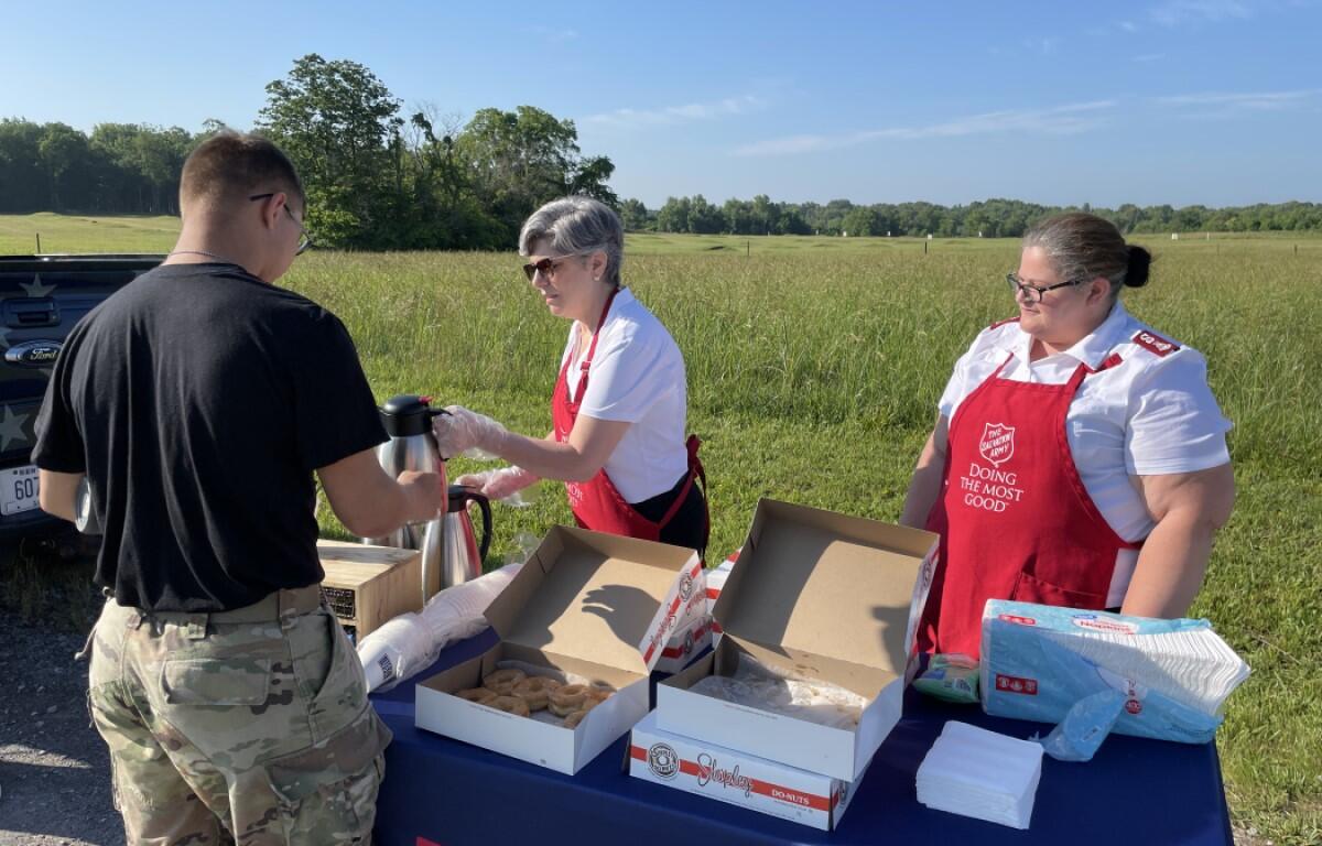 CLARKSVILLE, TN –In a display of support and appreciation for the brave men and women serving in the military, The Salvation Army of Clarksville teamed up with the USO at Fort Campbell to celebrate National Donut Day on Friday. Soldiers from the 101st Airborne Division were treated to 30 dozen donuts and cups of coffee following their morning physical training (PT).