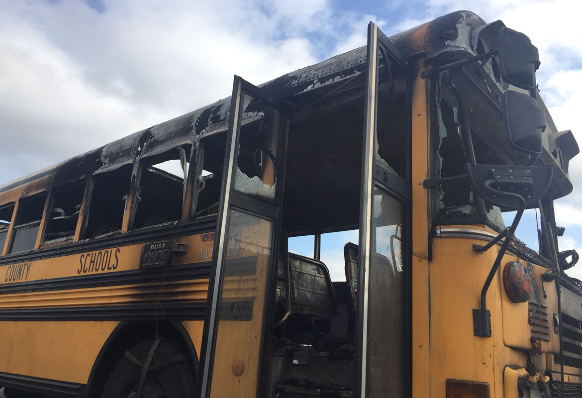Tennessee Highway Patrol and CMCSS Transportation staff investigated the cause of the fire on the 2001 Bluebird front engine passenger bus.