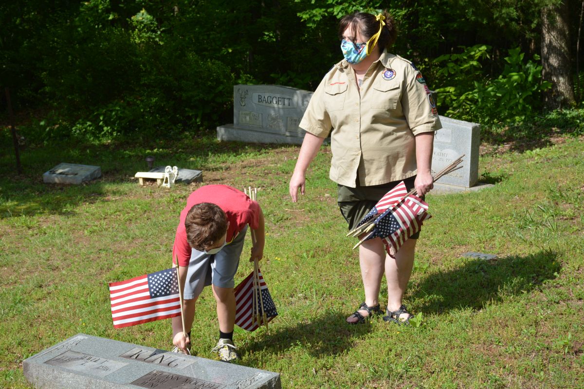 Each time a scout placed a flag near a gave, they would then give a scouting salute and thank that veteran for their service.