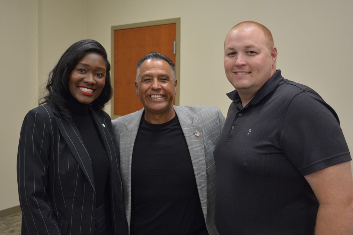 Clarksville City Councilperson Vondell Richmond, State Representative Candidate Tommy Vallejos, and State Representative/Deputy Speaker Curtis Johnson attend the Legislative Agenda Reception on Oct. 25, 2022. (Jake Foster).