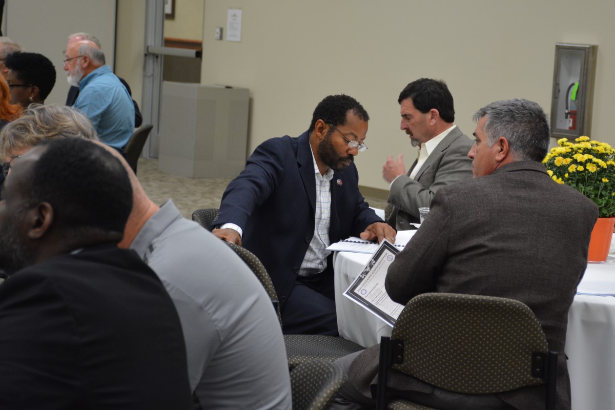 Senator Bill Powers, State Representative/Deputy Speaker Curtis Johnson, and Montgomery County officials attend the Legislative Agenda Reception on Oct. 25, 2022. (Jake Foster).