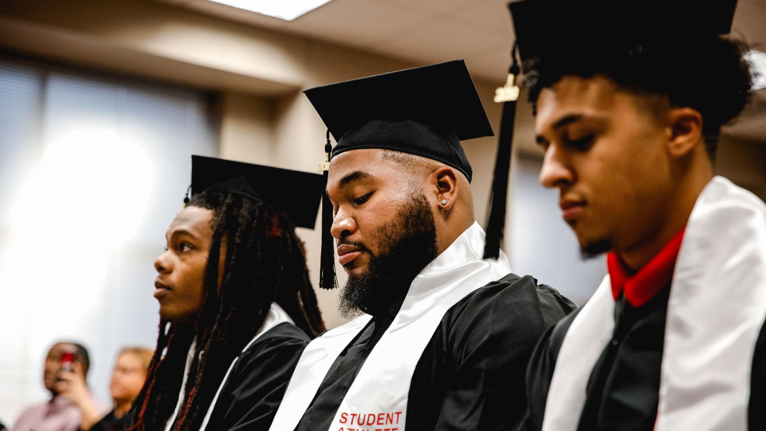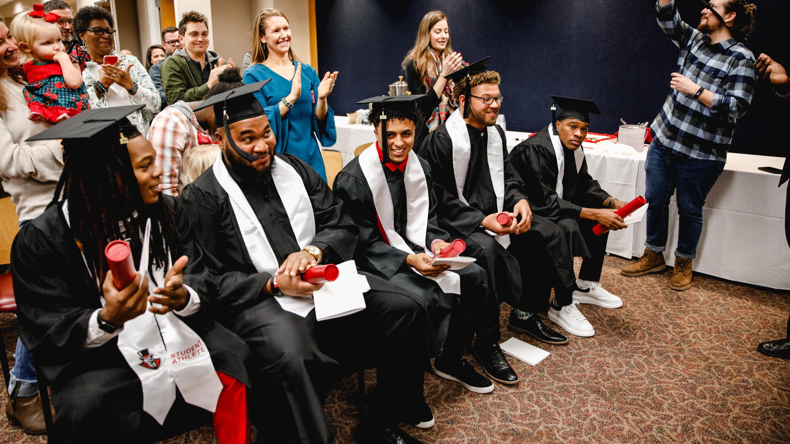 To honor these five student-athletes, President Alissa White, Provost Rex Gandy, and Director of Athletics Gerald Harrison led a graduation ceremony in the Morgan University Center.