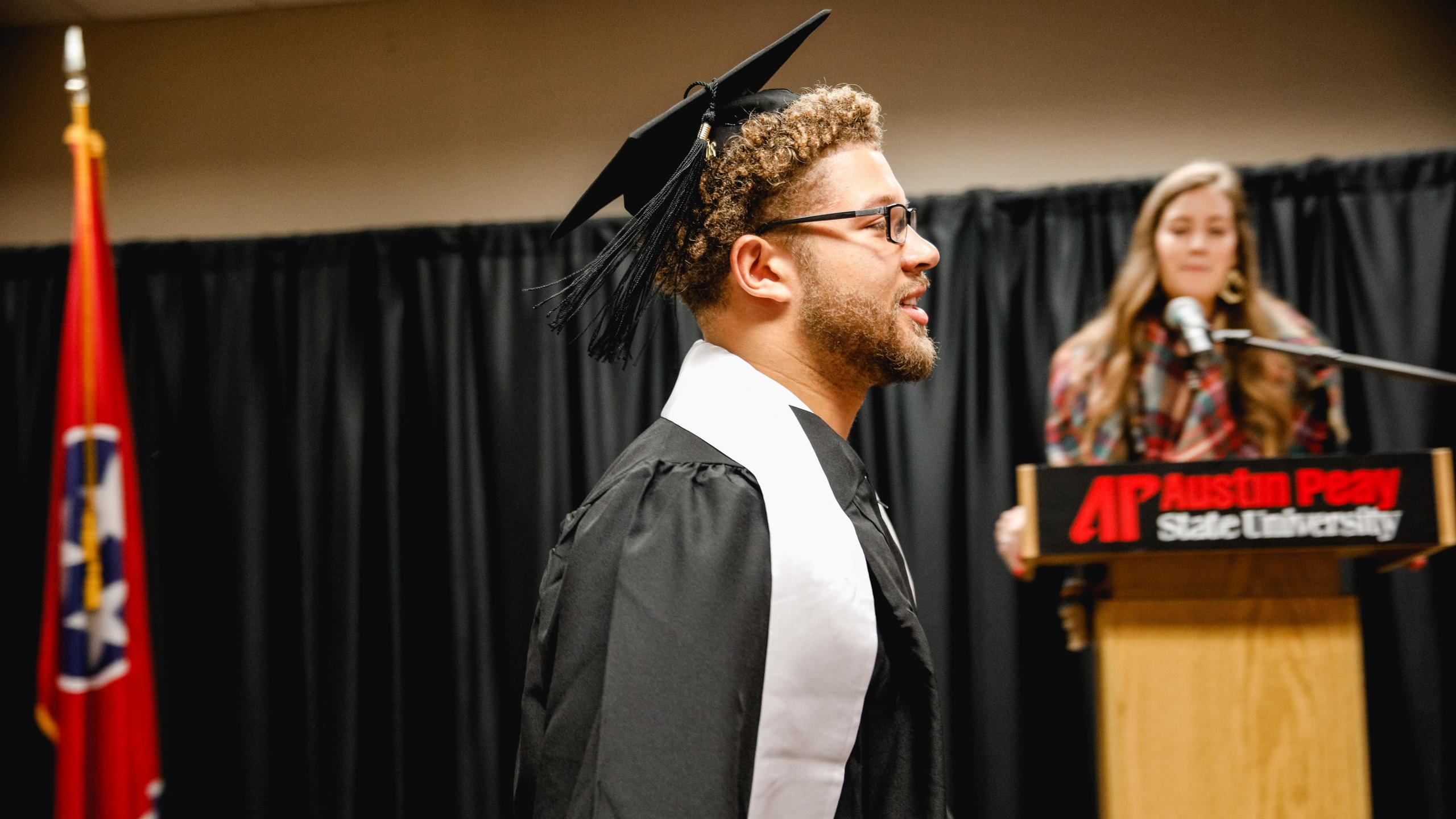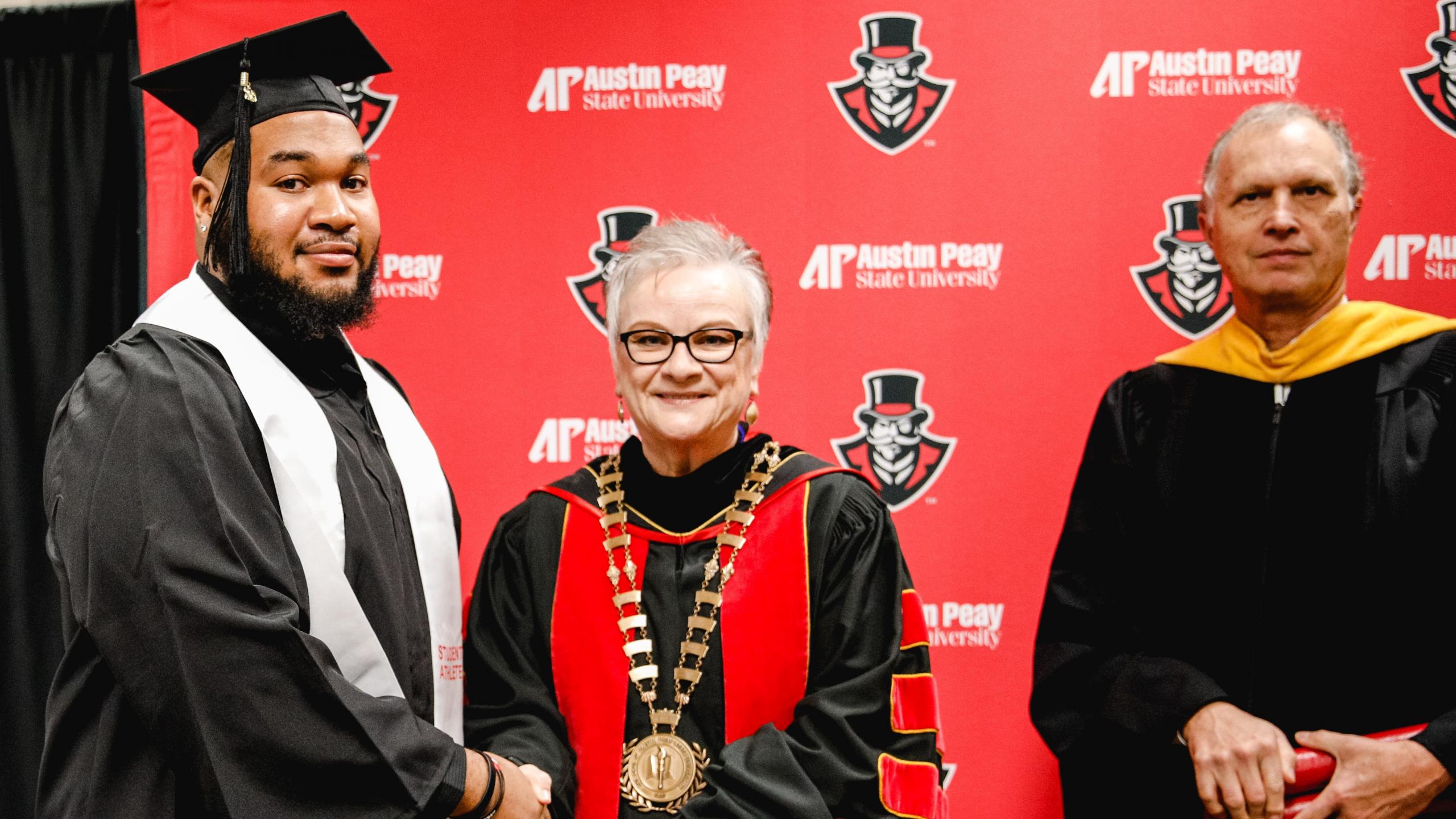 Jonathan Edwards III, Erskine Francis, Marquise Griffin, Devin Stuart, and Shaun Whittinghill were all set to receive their degrees from Austin Peay at the 2019 Winter Commencement. However, the Governors historic run in the FCS Playoffs led them to miss the Friday morning ceremony.