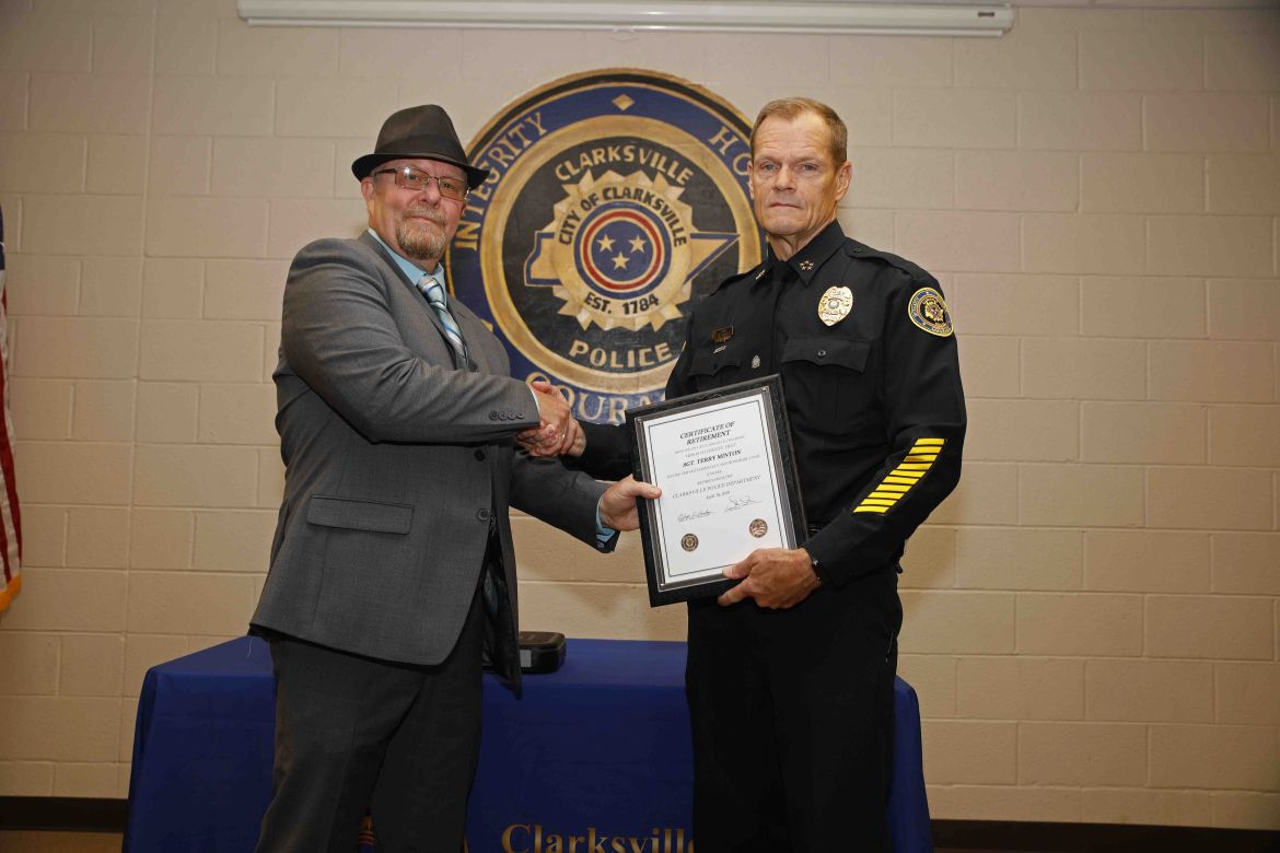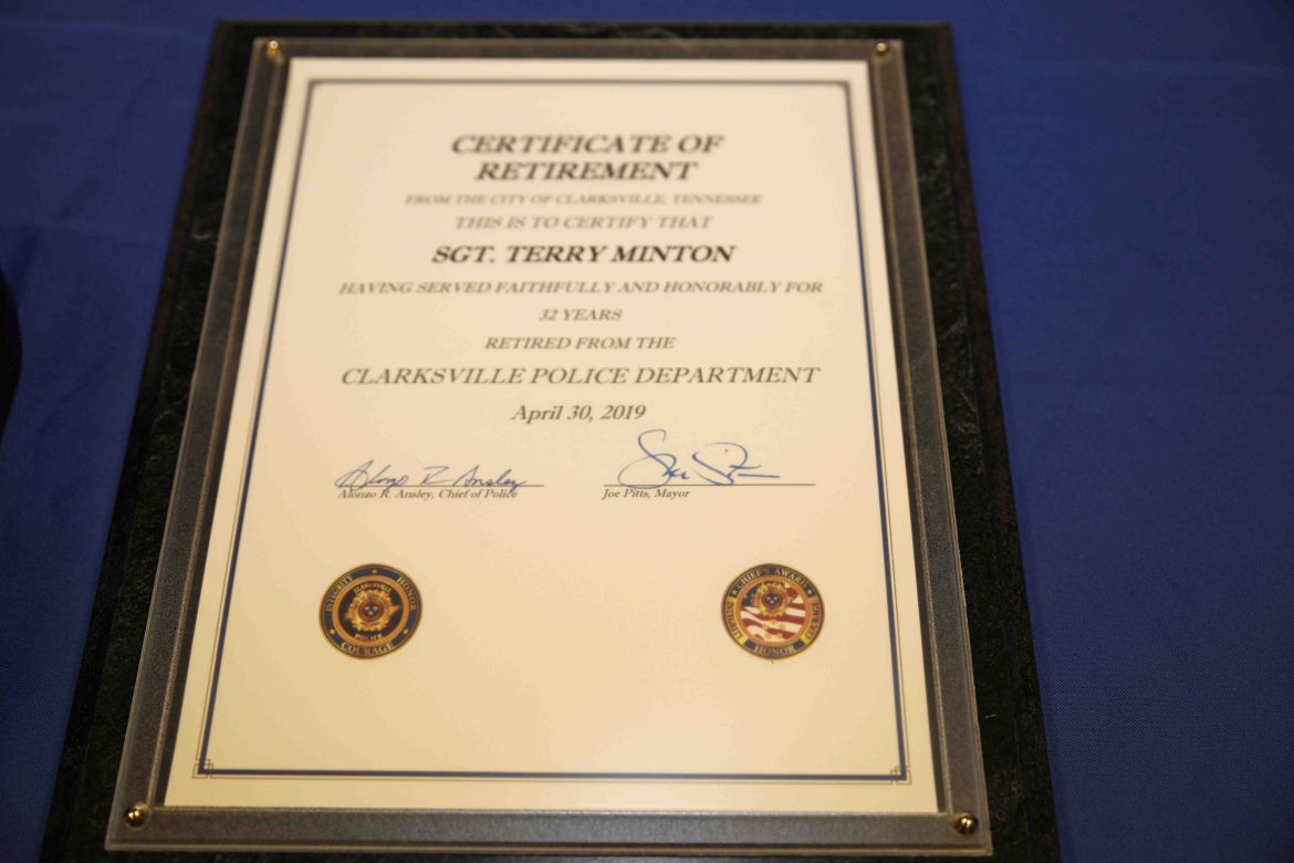 CLARKSVILLE, Tenn. (CLARKSVILLENOW) – Sergeant Terry Minton celebrated his retirement from the Clarksville Police Department (CPD) after 32 years of service.