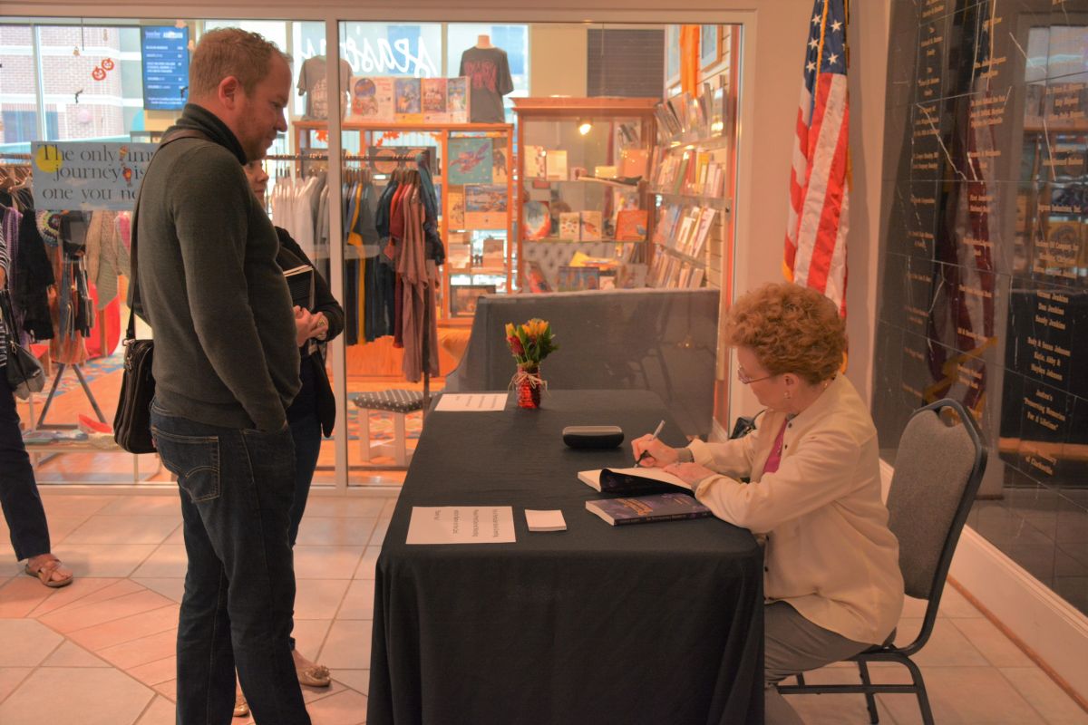 More than 50 people attended the reading in the museum’s auditorium and signing of her book by Mabry in the museum’s lobby, with her new book available at Seasons: The Museum Store. Mabry said she began working on the idea for the novel in 1992. After writing a few chapters, she placed them in a desk drawer, and because her busy schedule, she said, it stayed there for more than a decade.