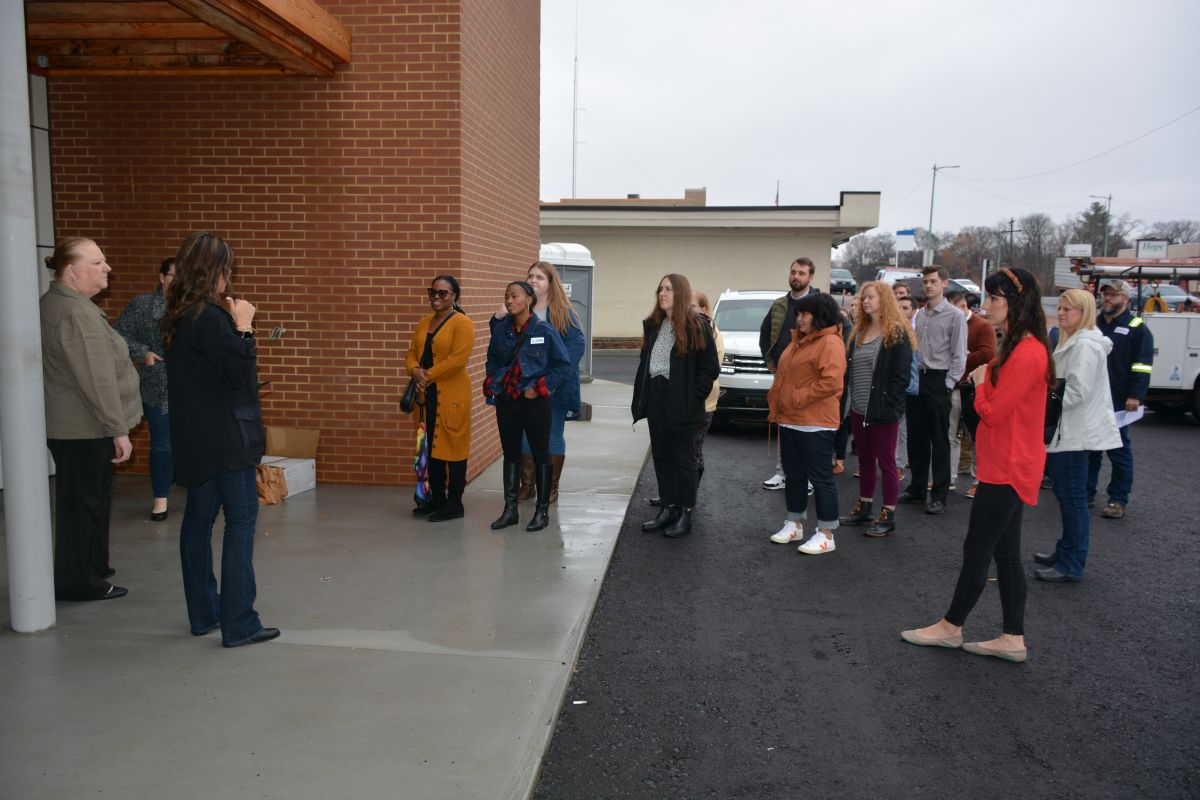 Clarksville Young Professional’s tour Shelby’s Trio during construction, at the corner of N. Second St. and College St. on Dec. 7, 2022. (Lee Erwin).