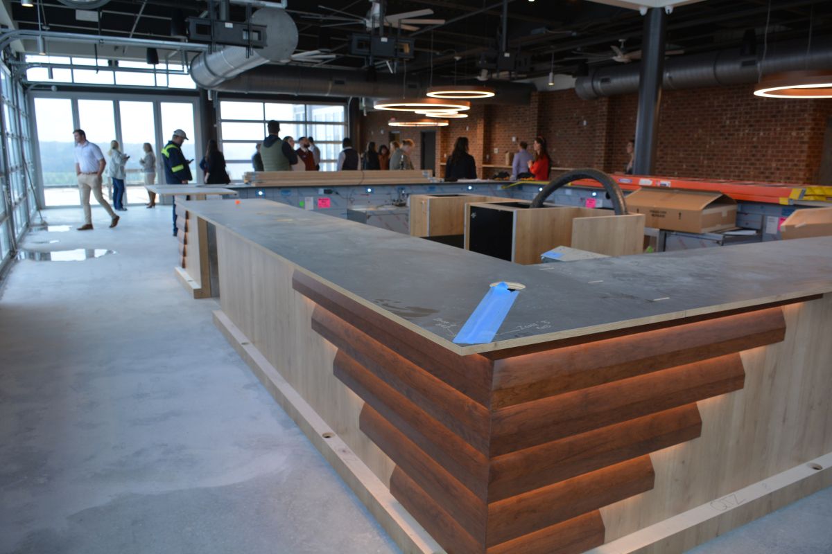 Shelby’s Trio is a three-tiered restaurant complex owned by Joe and Cathi Maynard of JCM Management in Clarksville. Sara Golden, project manager for JCM, led the tour and shared details on what’s coming.