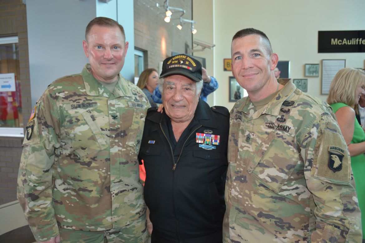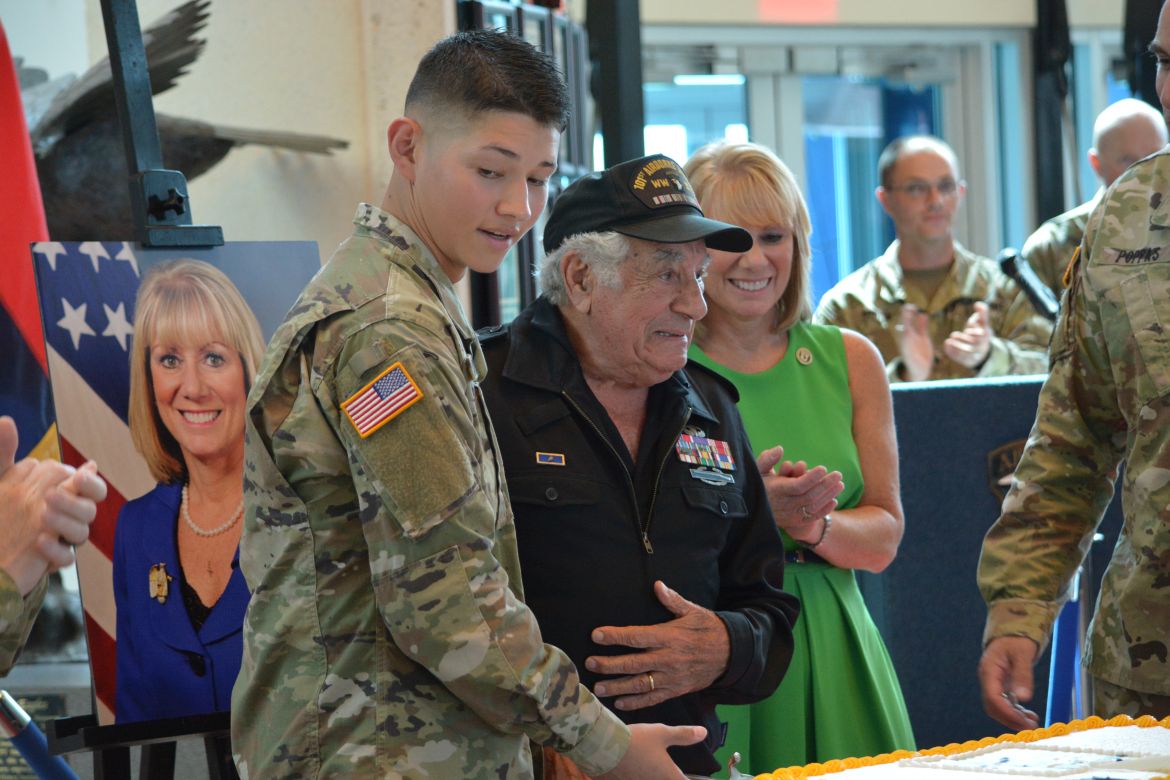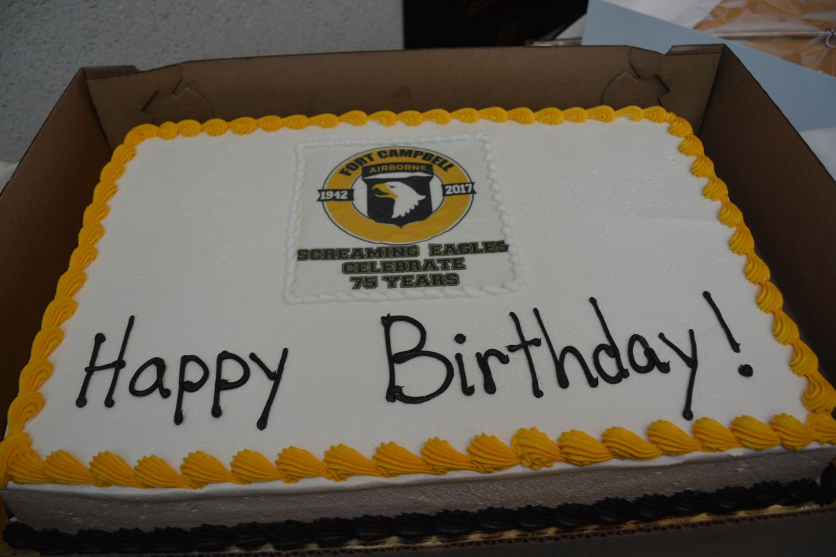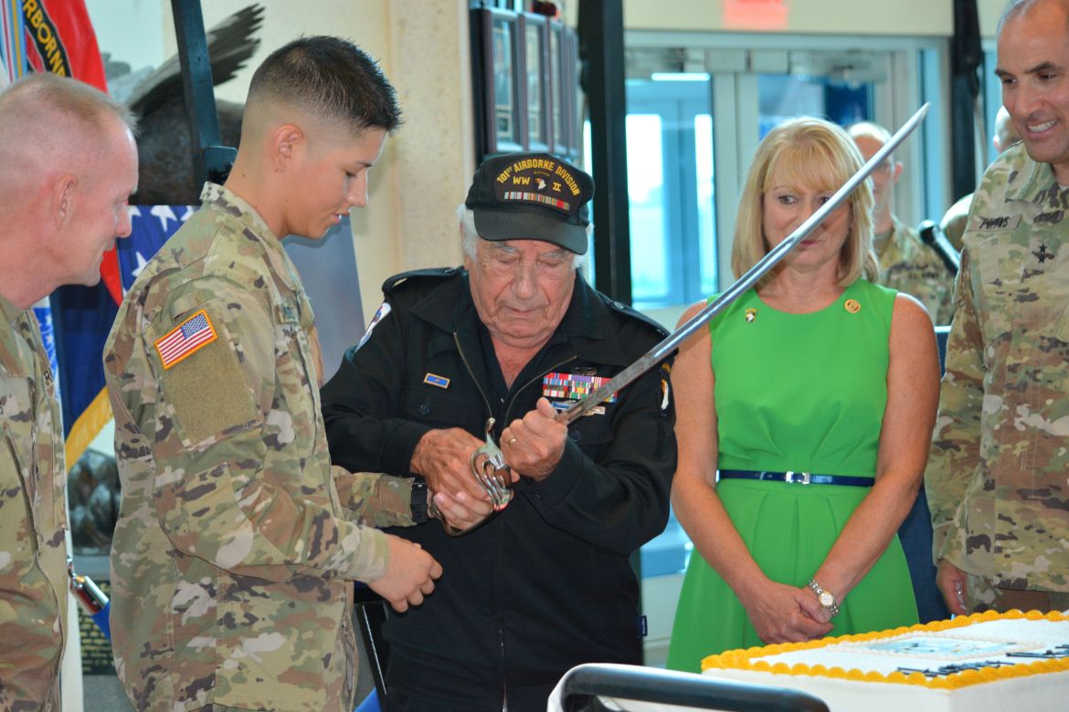 Along with the Champions of Fort Campbell, a cake cutting ceremony was held as the youngest soldier on the installation as 17-year-old Pvt. Mark Gurrola and a 101st WWII veteran, Vincent Speranza, took a sword to cut the cake.