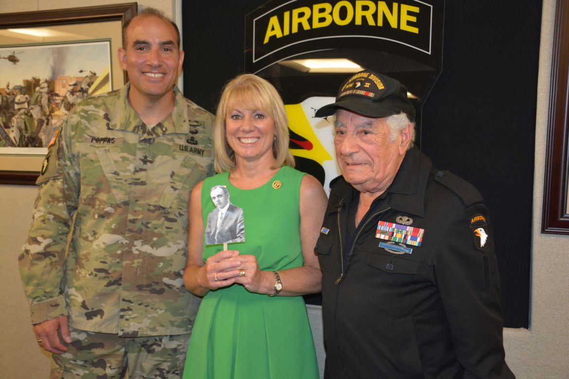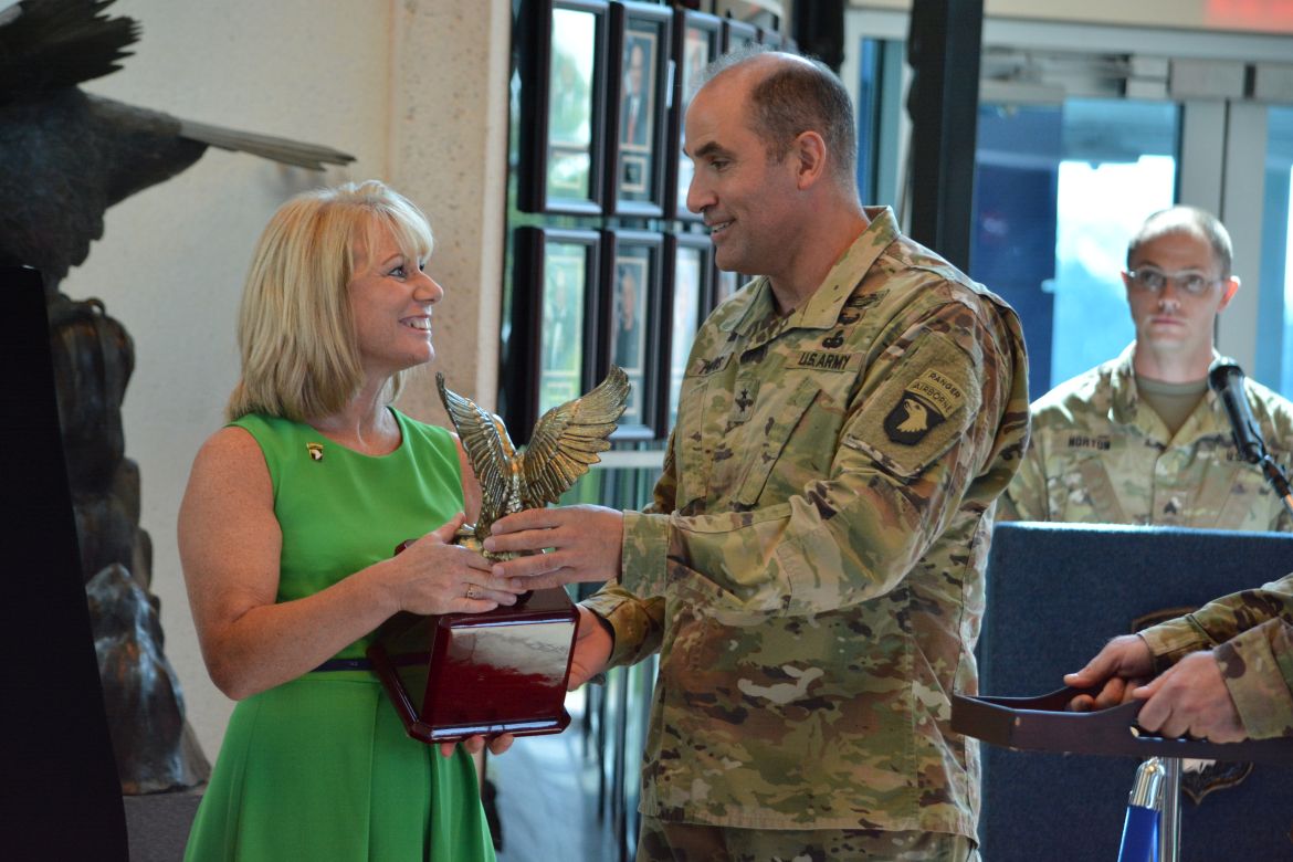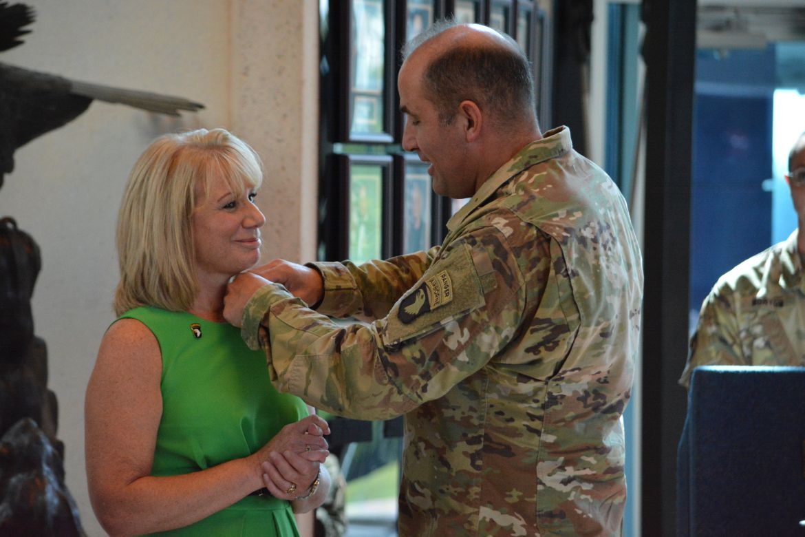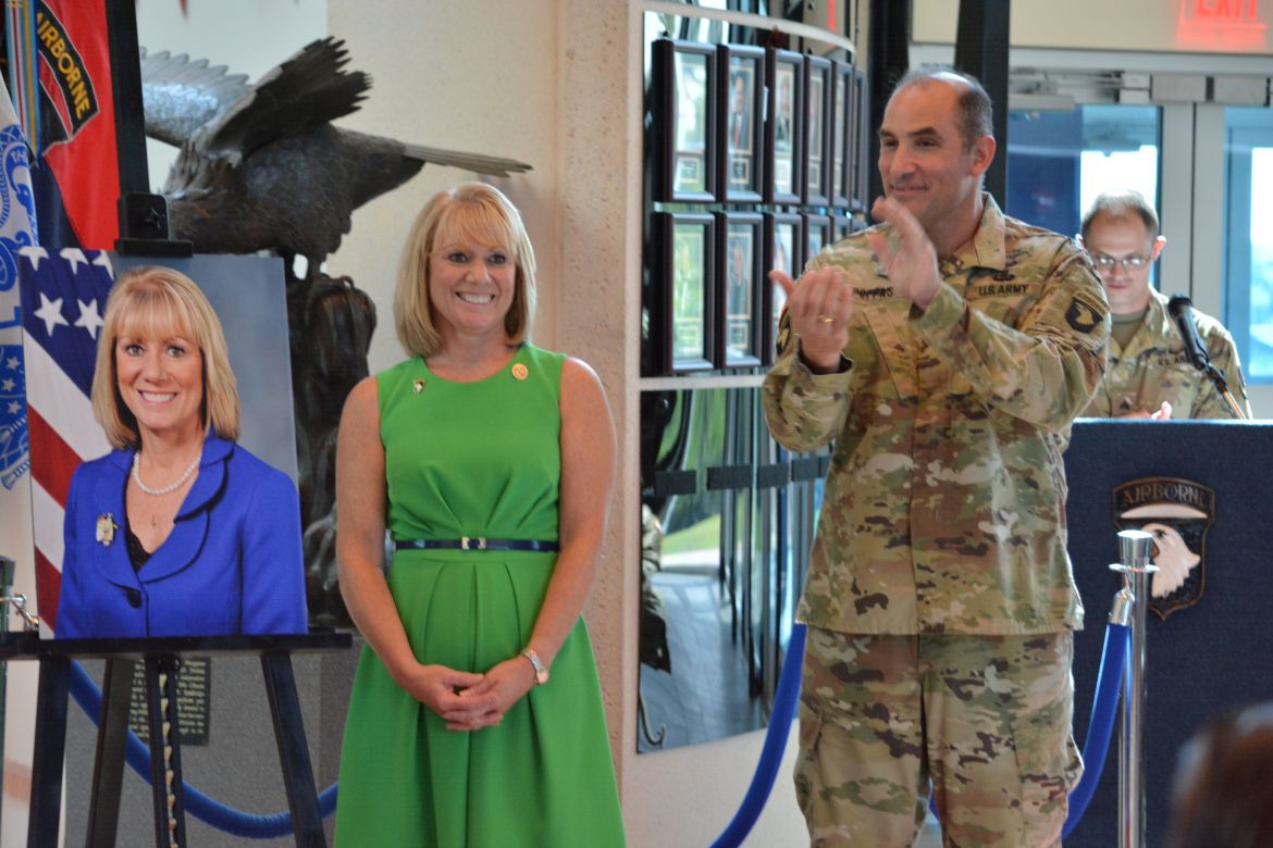 The Commanding General of the 101st Airborne Division (Air Assault) and Fort Campbell, Major General Andrew Poppas, talked about her many contributions to the military community and congratulated Ellis, saying it was an honor to induct her as a Champion of Fort Campbell.