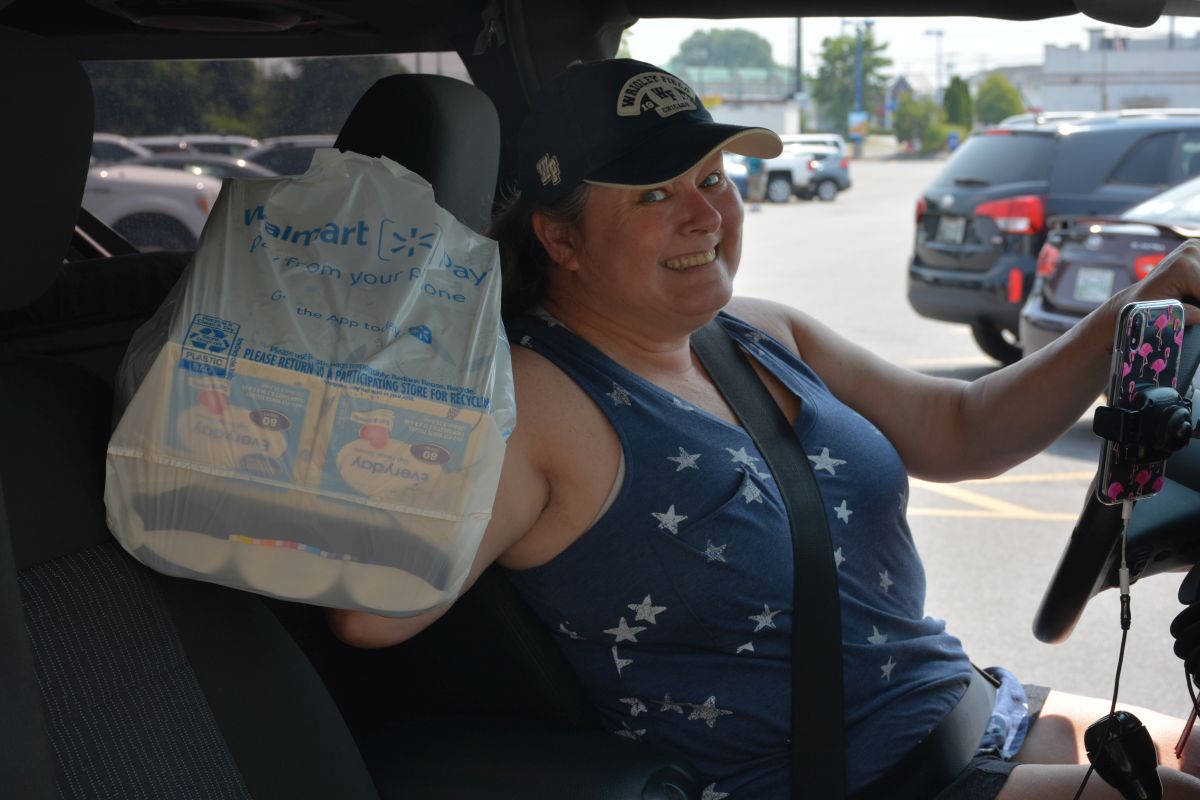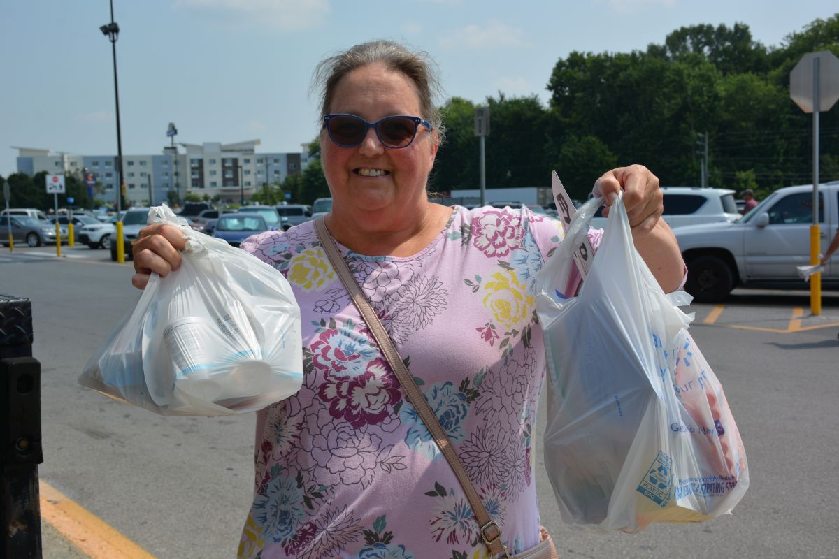 A volunteer collects donations of school supplies at Walmart for the Stuff the Bus event on Sat July 24 2021 (Lee Erwin).