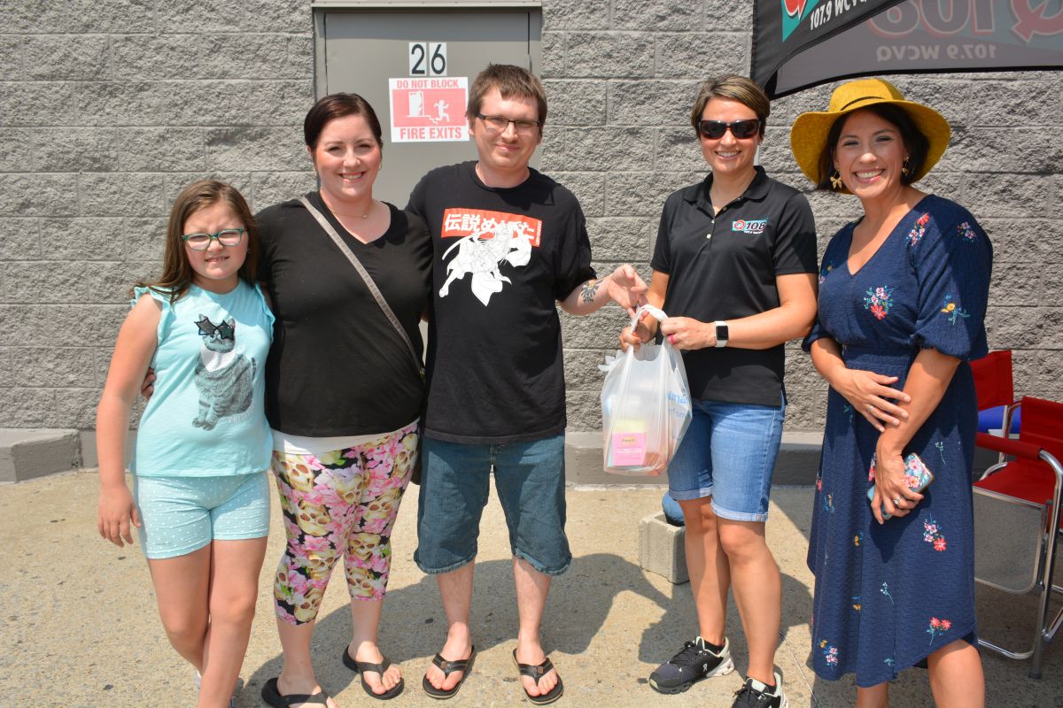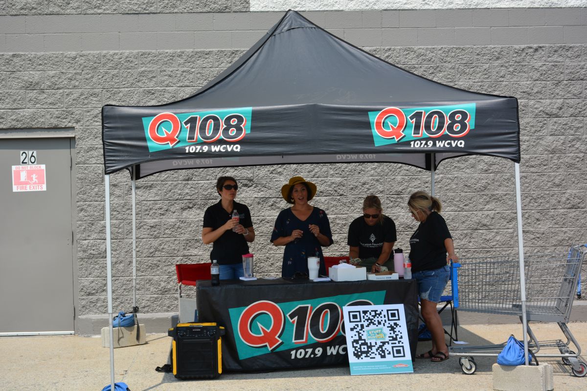 Sari, morning air personality on Q108 and volunteers ready to accept donations of school supplies at Walmart for the Stuff the Bus event on Sat July 24 2021 (Lee Erwin).