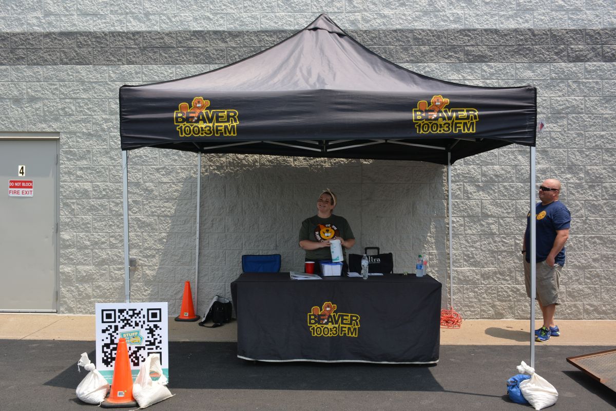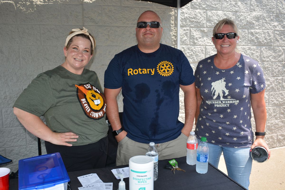 Mandi, morning air personality on Beaver Country 100.3 and volunteers collect donations of school supplies at Walmart for Stuff the Bus on Sat July 24 2021 (Lee Erwin).