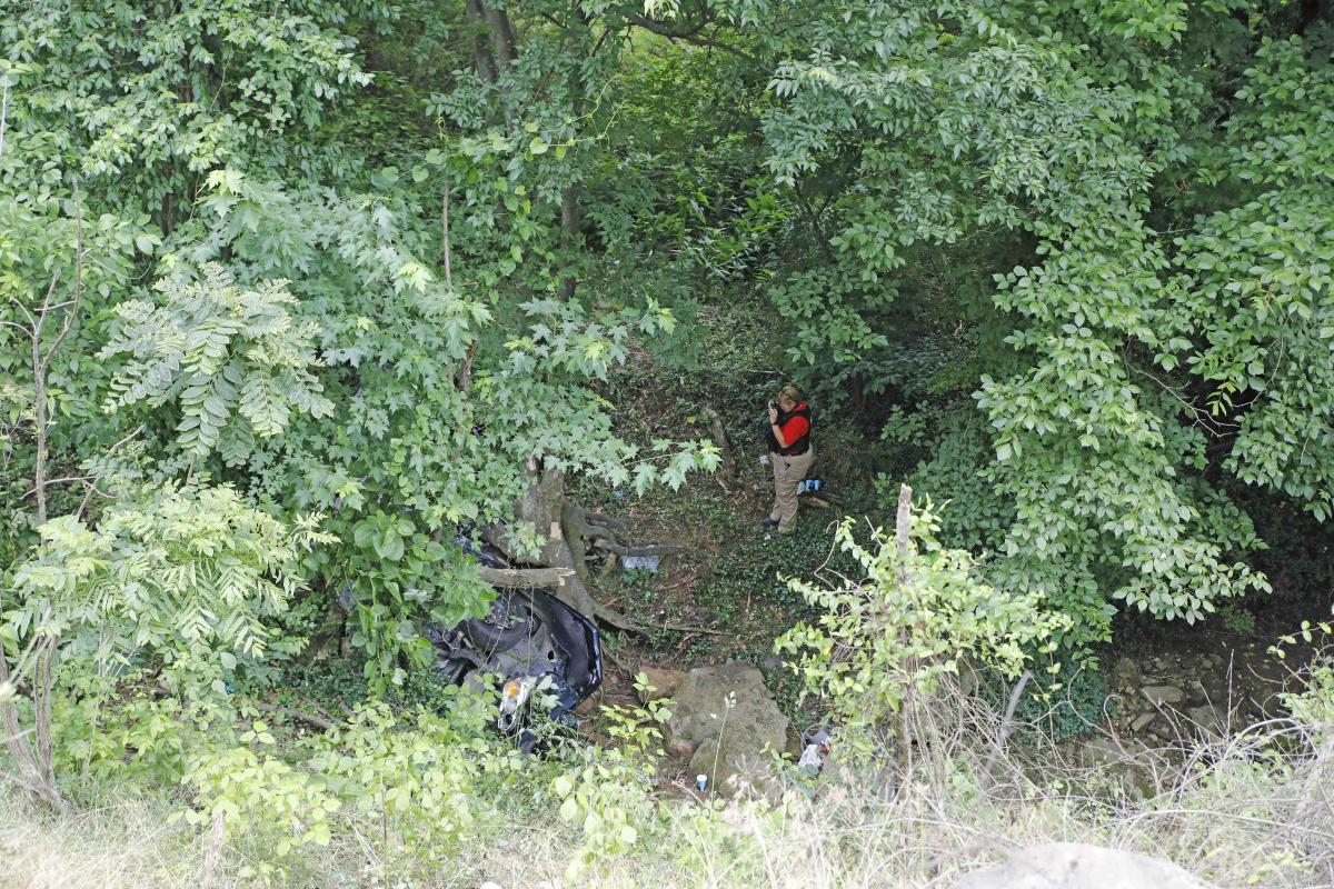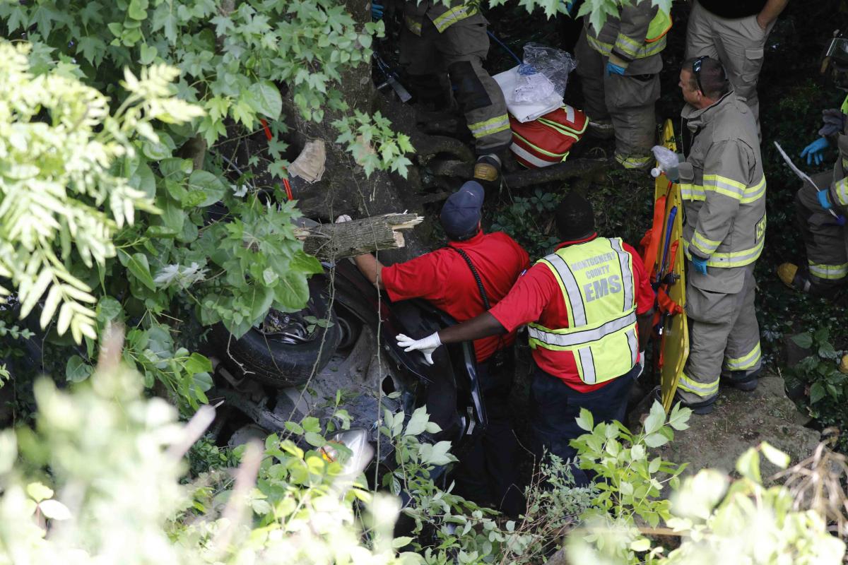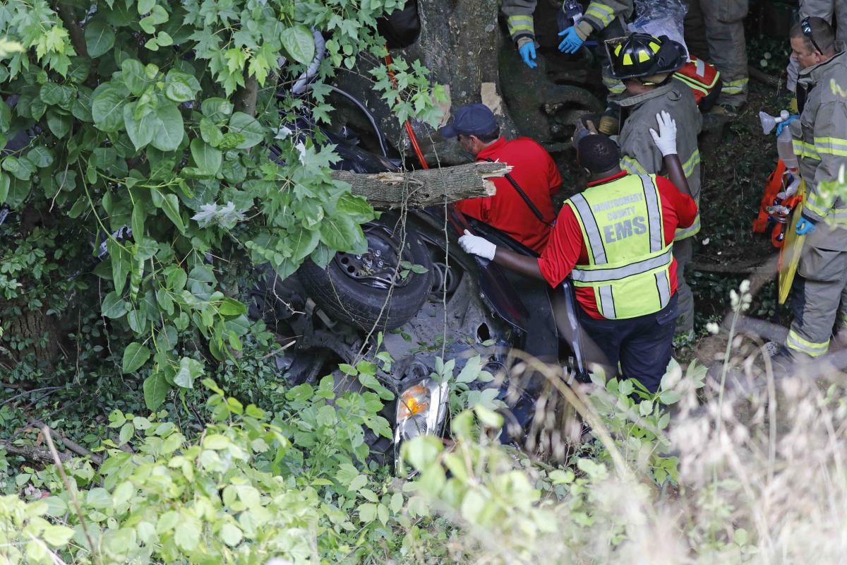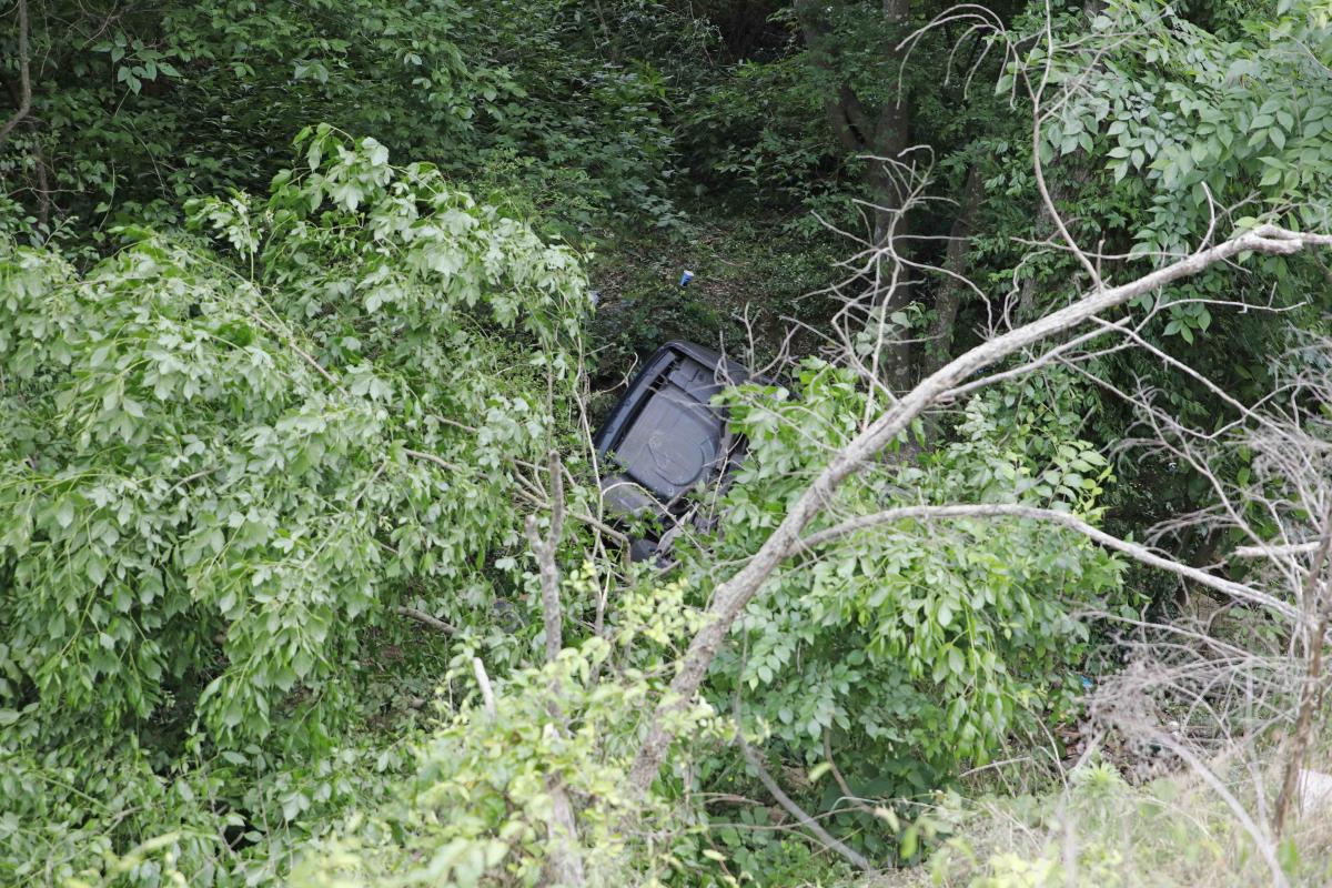 Two men in a Chevy Malibu were traveling north on Ashland City Rd and, for an unknown reason, the driver crossed the center turn lane and southbound lane and went off the left side of the paved roadway. The vehicle traveled down a steep wooded embankment and came to rest at the bottom on its side.