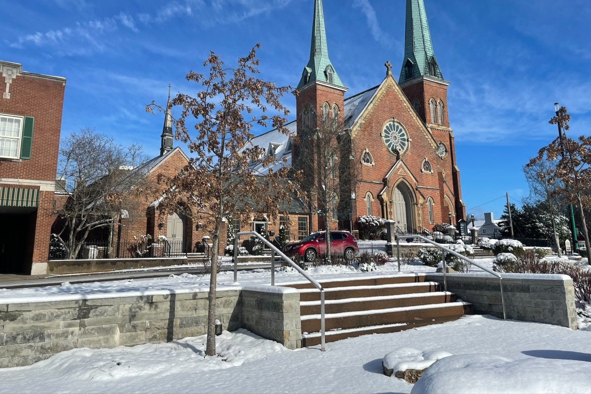 First Presbyterian Church in the snow on Friday morning, Jan. 7, 2022. (Keely Quinlan)