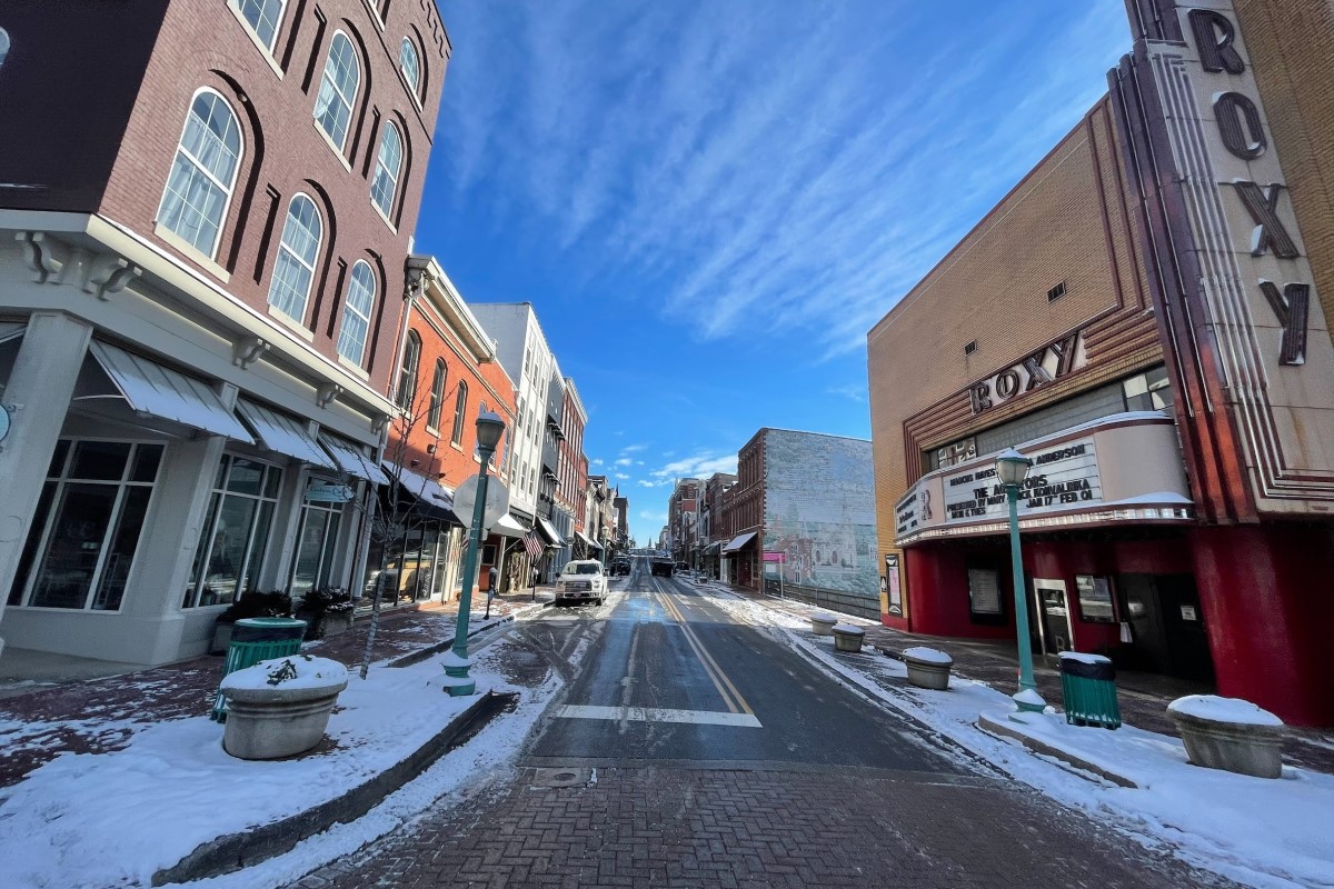 Franklin Street in the snow on Friday morning, Jan. 7, 2022. (Keely Quinlan)