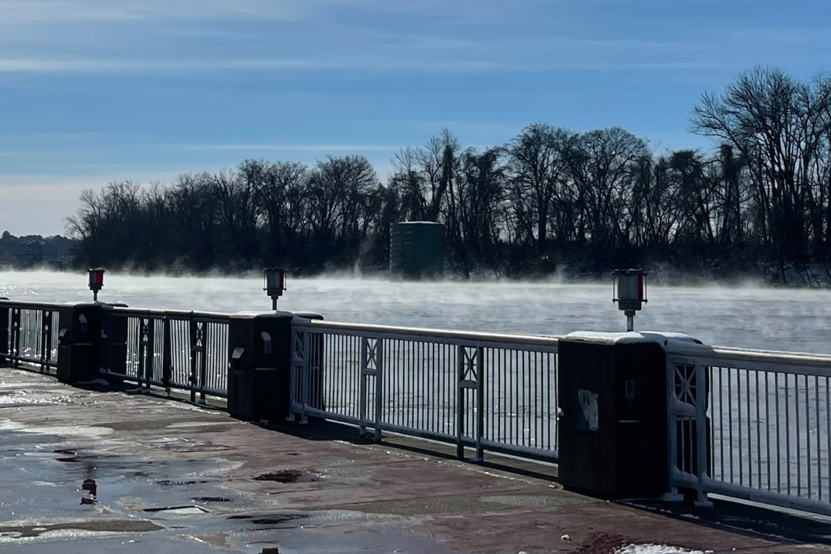 Mist rises from the Cumberland River at McGregor Park on Friday morning, Jan. 7, 2022. (Keely Quinlan)