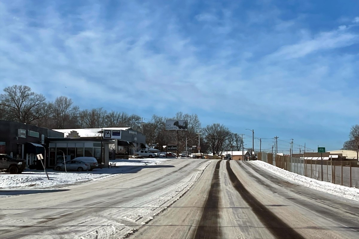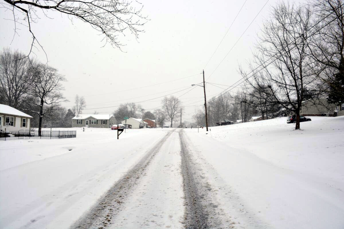 Snow and slush cover the roads at Singletree Estates in Clarksville on Jan. 6, 2022. (Keely Quinlan)