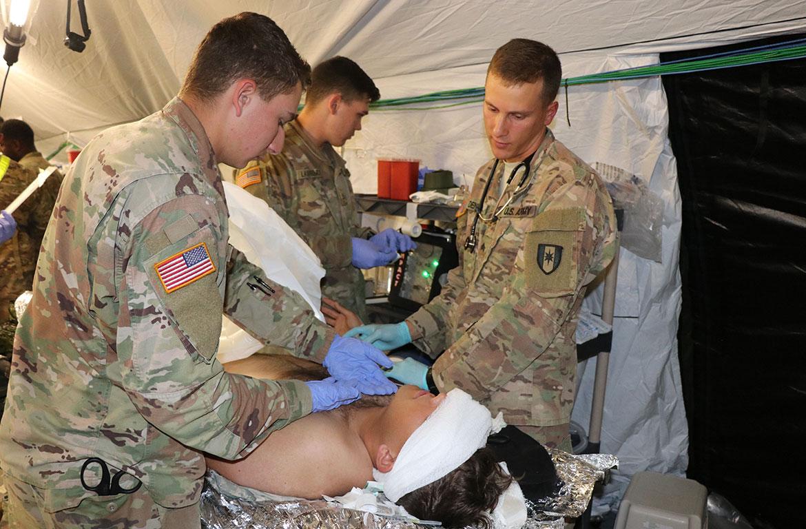 As the command element, the 531st can deploy with two field hospitals and specialty units and augmentees. This training also included Soldiers from the 72nd Veterinary Detachment, 501st Area Support Medical Company, 179th Medical Detachment, 41st Medical Detachment, 212th Combat Stress Control, and 61st Preventive Medicine Detachment.