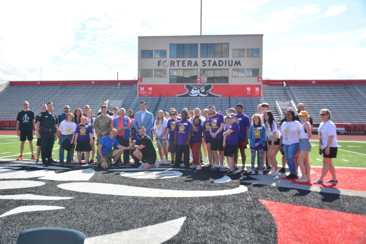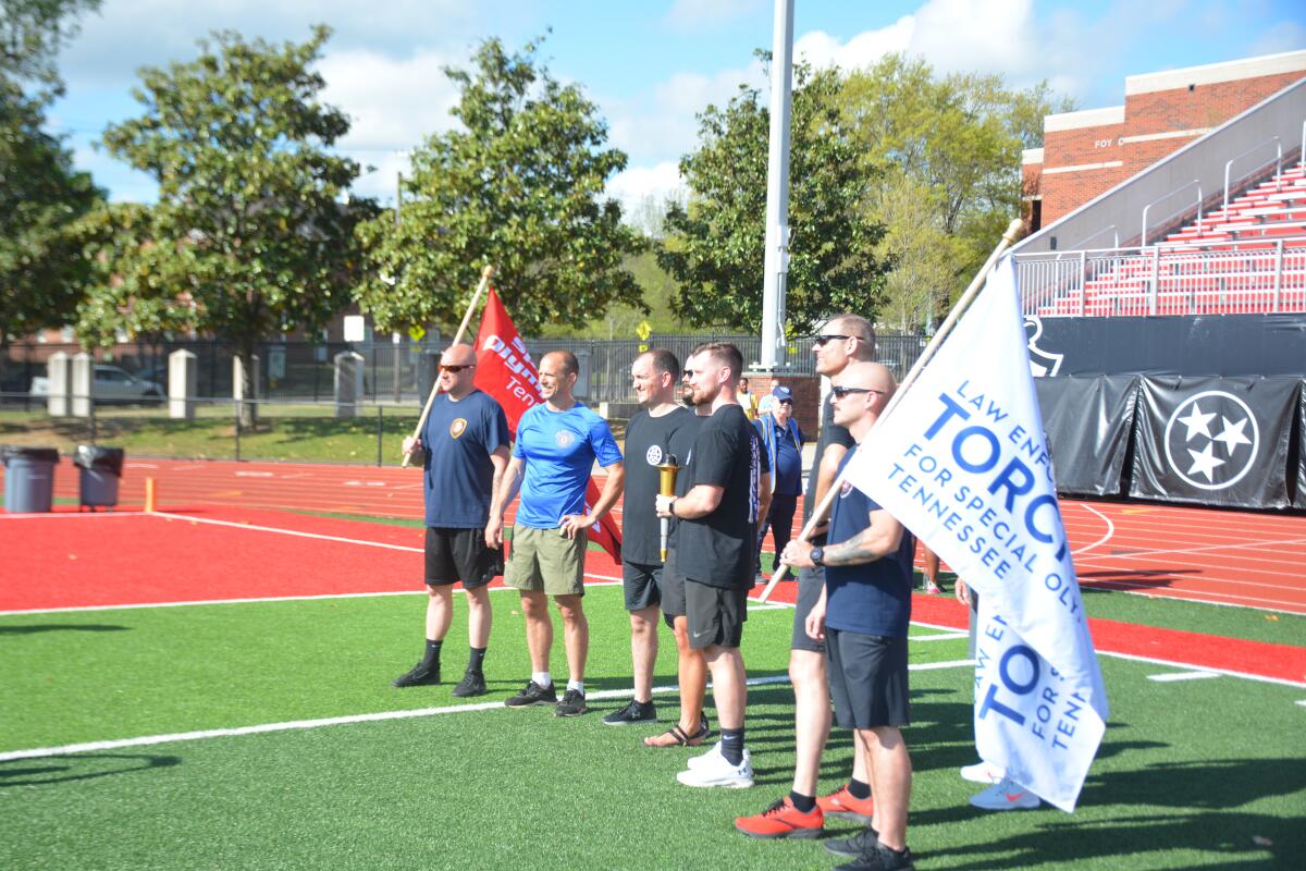 Clarksville Police officers ran the torch into the field to start the event. County Mayor Wes Golden, Clarksville Mayor Joe Pitts and Col. Andrew Jordan, garrison commander of Fort Campbell, spoke words of encouragement to all of the athletes.