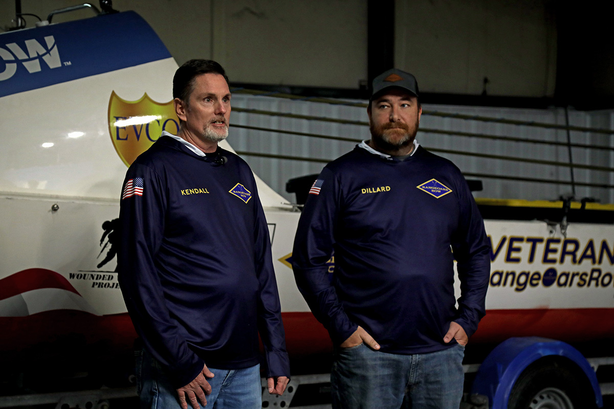 On Monday, two members of team RangeOars Row unveiled the finished version of their raft at Dickson Graphics of Clarksville with sponsors and family present. Michael Kendall, retired master sergeant, led the unveiling with the assistance of Sean Dillard, retired specialist and six-year combat veteran.