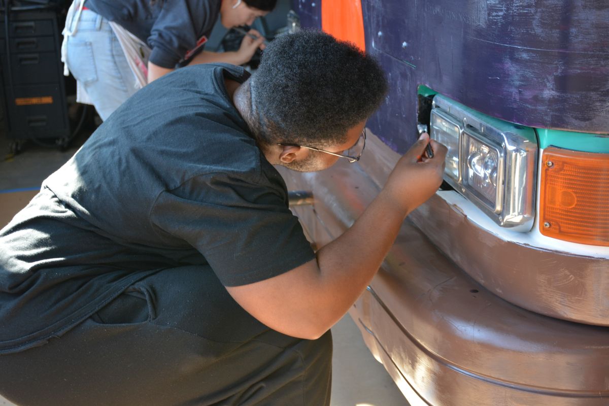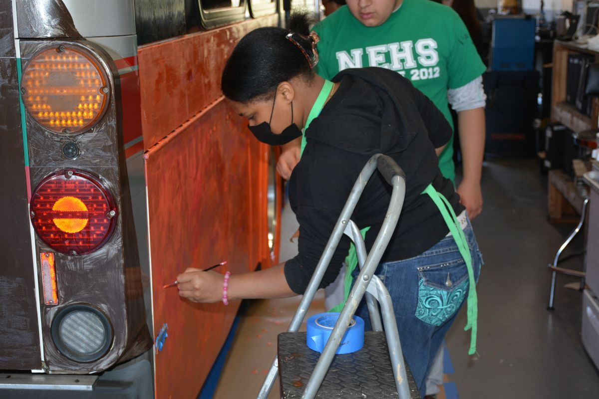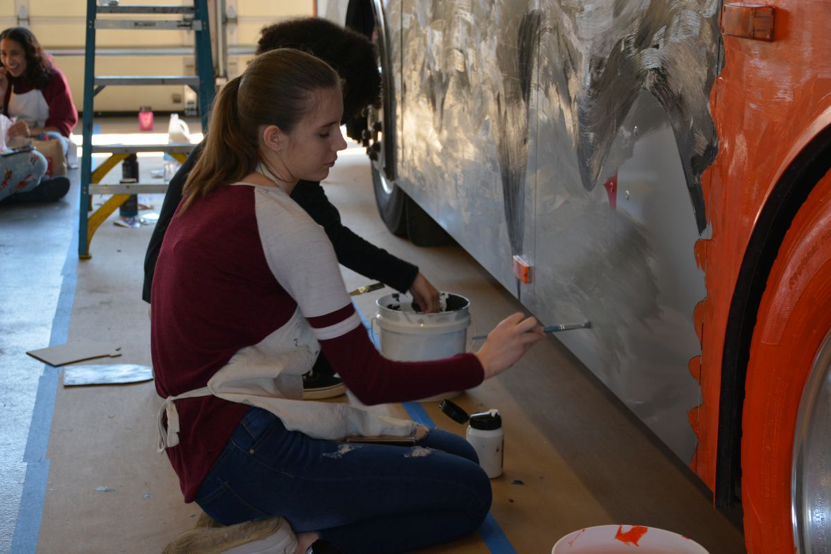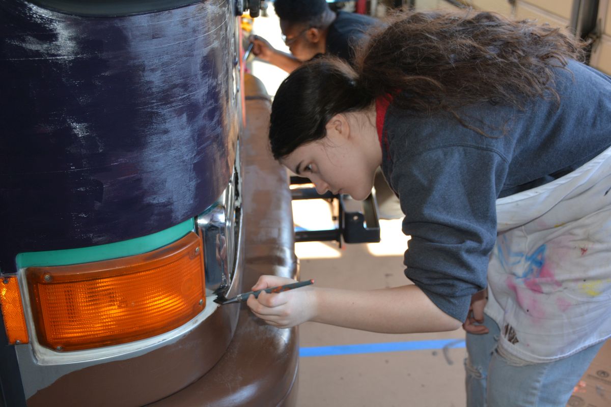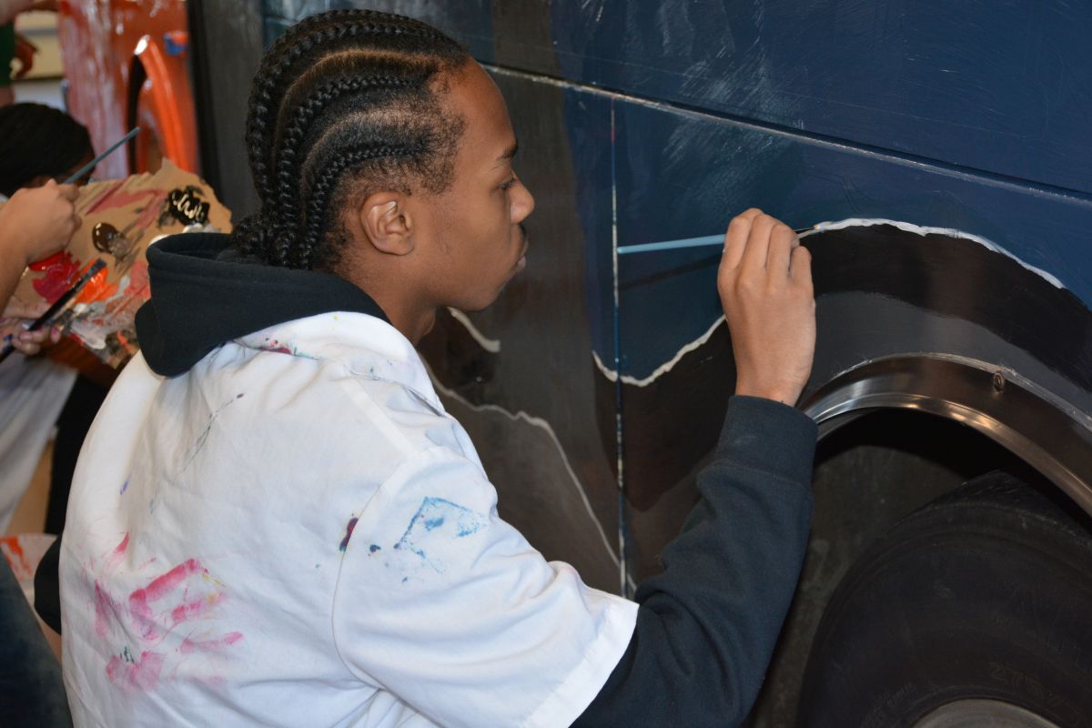 On Thursday, 17 art students, grades 9-12, from Northeast High School spent part of their day applying their talents, as well as paint, to a CTS bus to create the Spooky Special.