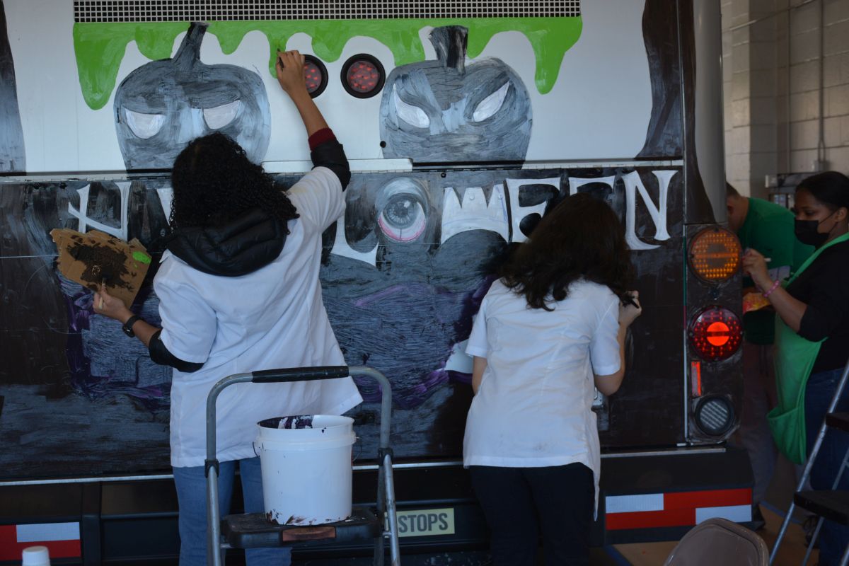 Art students from Northeast High School have spread their painting talents on the CTS Spooky Special bus for Halloween.