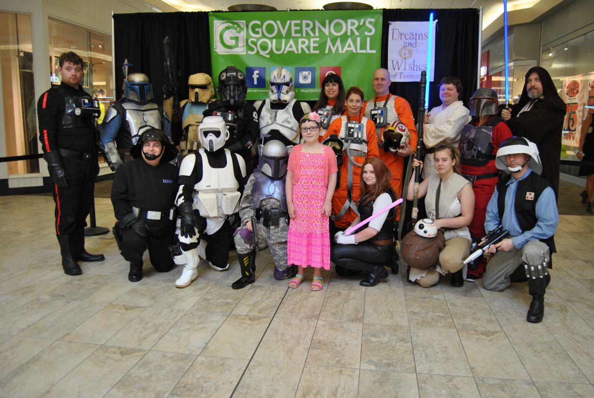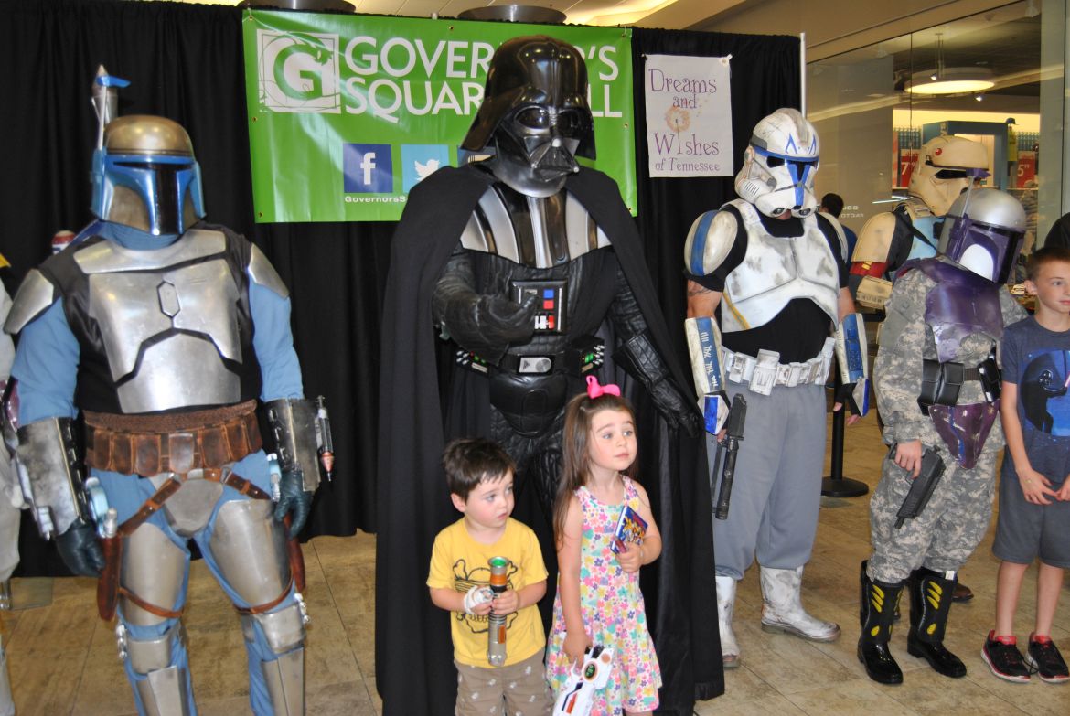 CLARKSVILLE, Tenn. – (CLARKSVILLENOW) Governors Square Mall was invaded Saturday by members of the 501st MidSouth Garrison, Star Wars characters who used “The Force” to raise funds for Dreams and Wishes of Tennessee. The public was invited to stop by, make a recommended donation, and take a photo with their favorite Star Wars character.