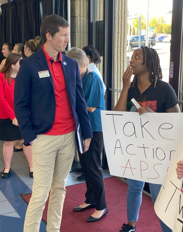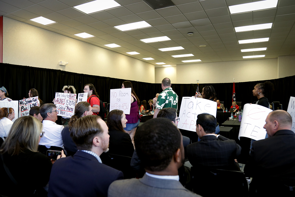 Carl Button, a student with the APSU Sexuality and Gender Alliance, said it was important for the APSU Board of Trustees to see the protest. “It’s significant because a lot of donors were there as well as top individuals in the administration. They have the most influence and power to do something about this,” Button said.