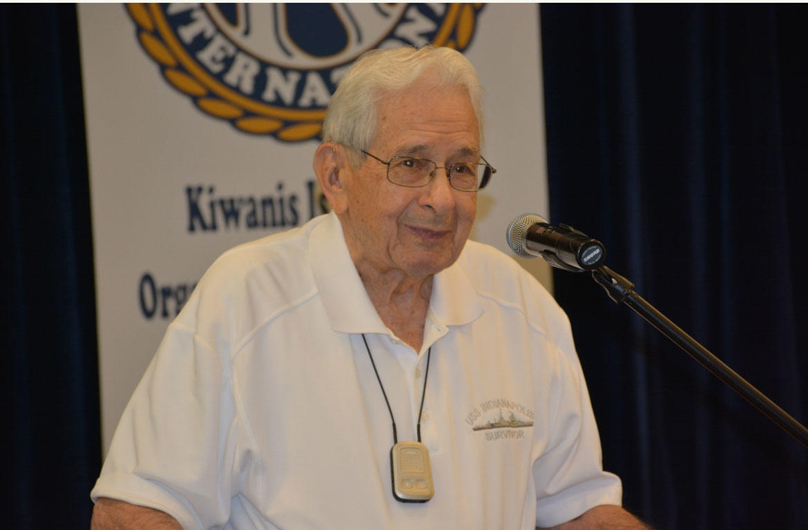 CLARKSVILLE, Tenn. – (CLARKSVILLENOW) The Downtown Kiwanis Club welcomed a very special guest speaker at their weekly meeting Tuesday. Edgar Harrell shared the amazing and tragic story about the sinking of the U.S. Navy Cruiser, USS Indianapolis in World War II.