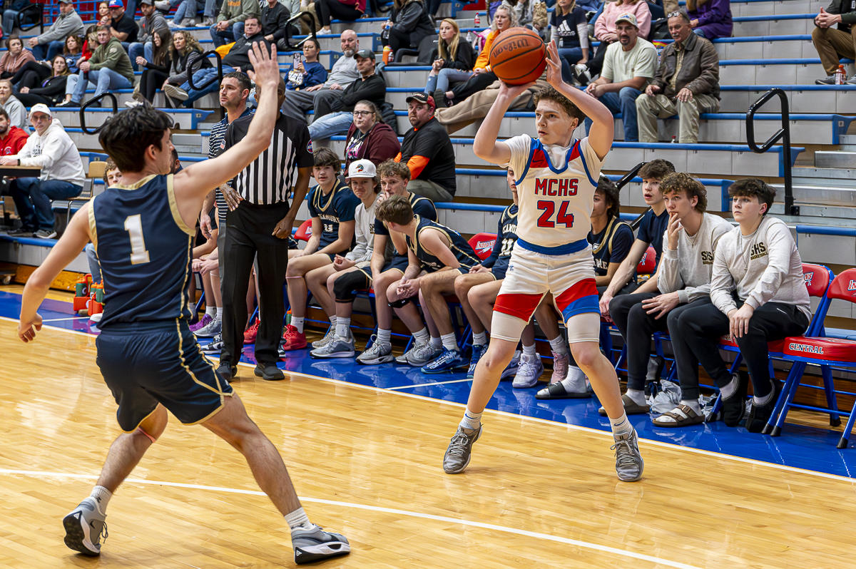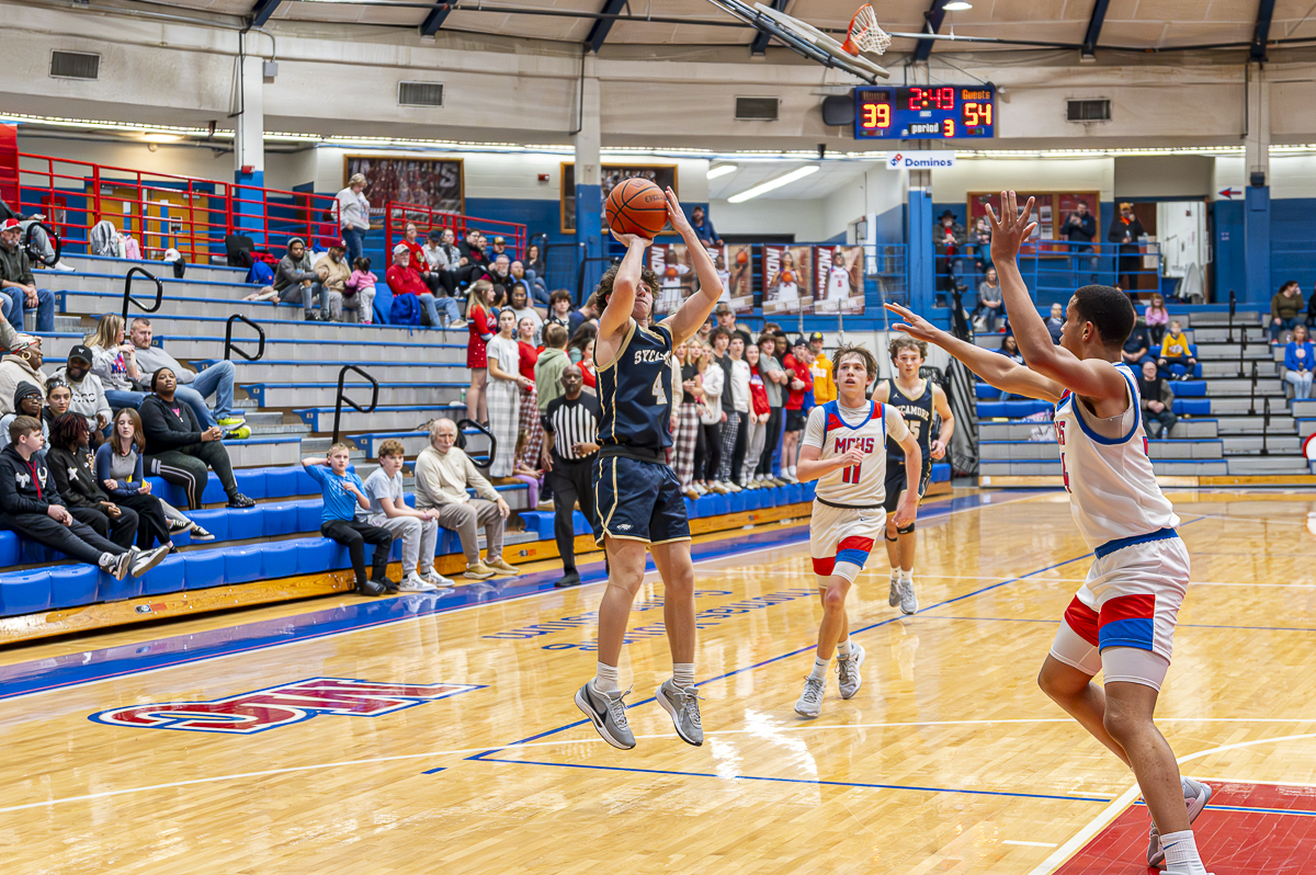 #24 Noah Simon of the Montgomery Central Indians for three against Sycamore High School on February 7, 2025 (Jeff Danault)