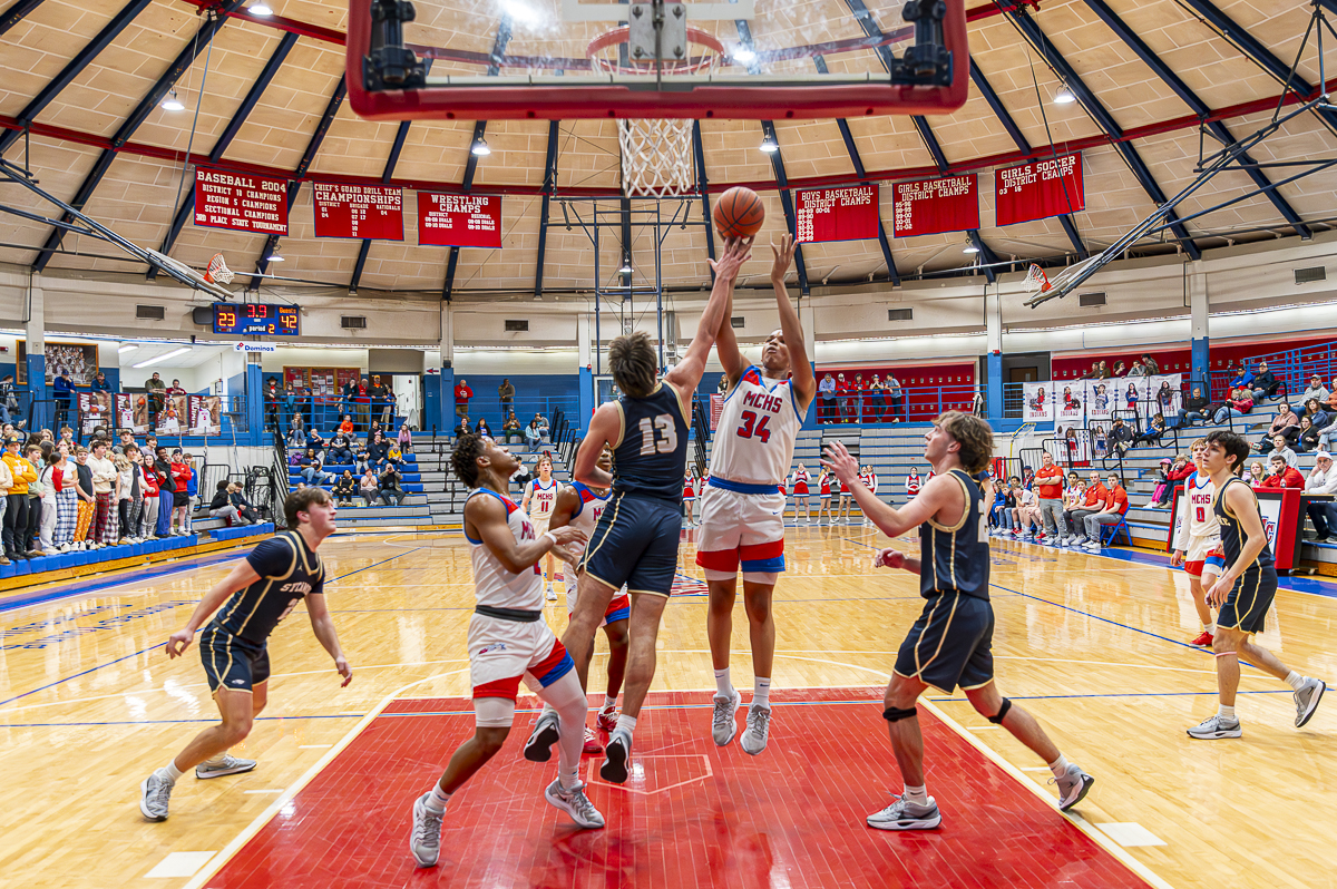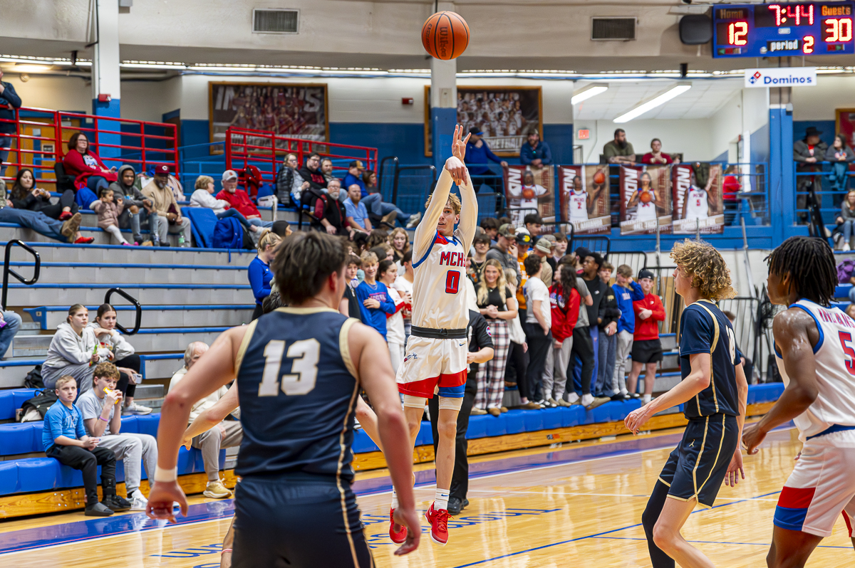 #0 Noah Nicholson of the Montgomery Central Indians for two against Sycamore High School on February 7, 2025 (Jeff Danault)
