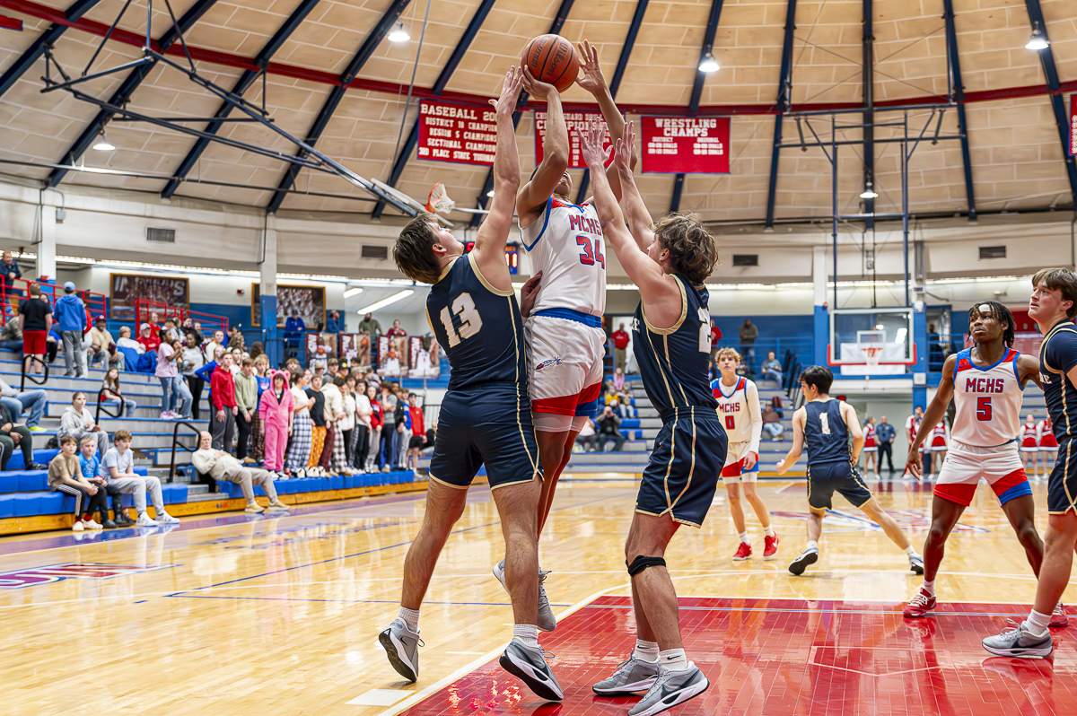 #11 Bryson Azarigian of the Montgomery Central Indians with a big rebound Sycamore High School on February 7, 2025 (Jeff Danault) 8
