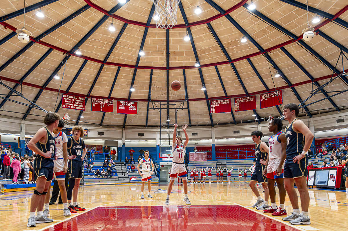 #11 Bryson Azarigian of the Montgomery Central Indians with a free throw against Sycamore High School on February 7, 2025 (Jeff Danault)
