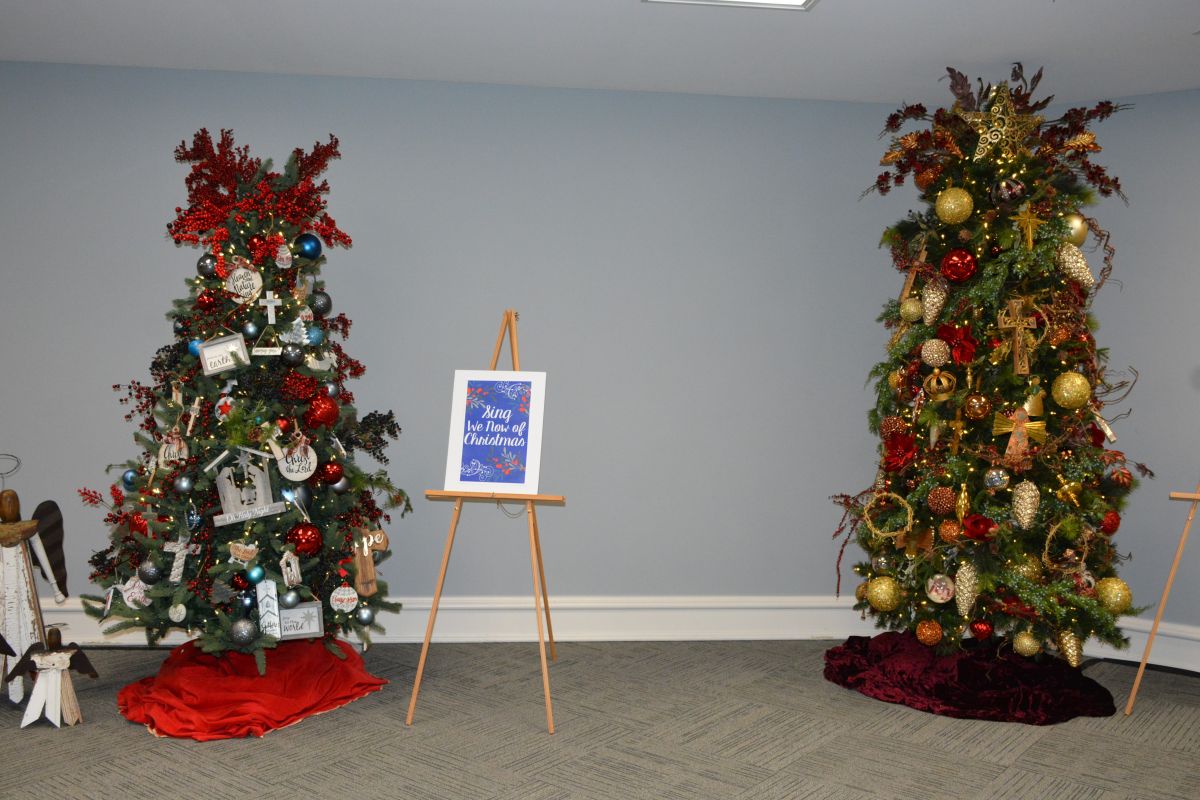 Two of the decorated Christmas trees at the Tour of Trees at First Baptist Clarksville on Nov. 30, 2023. (Lee Erwin)