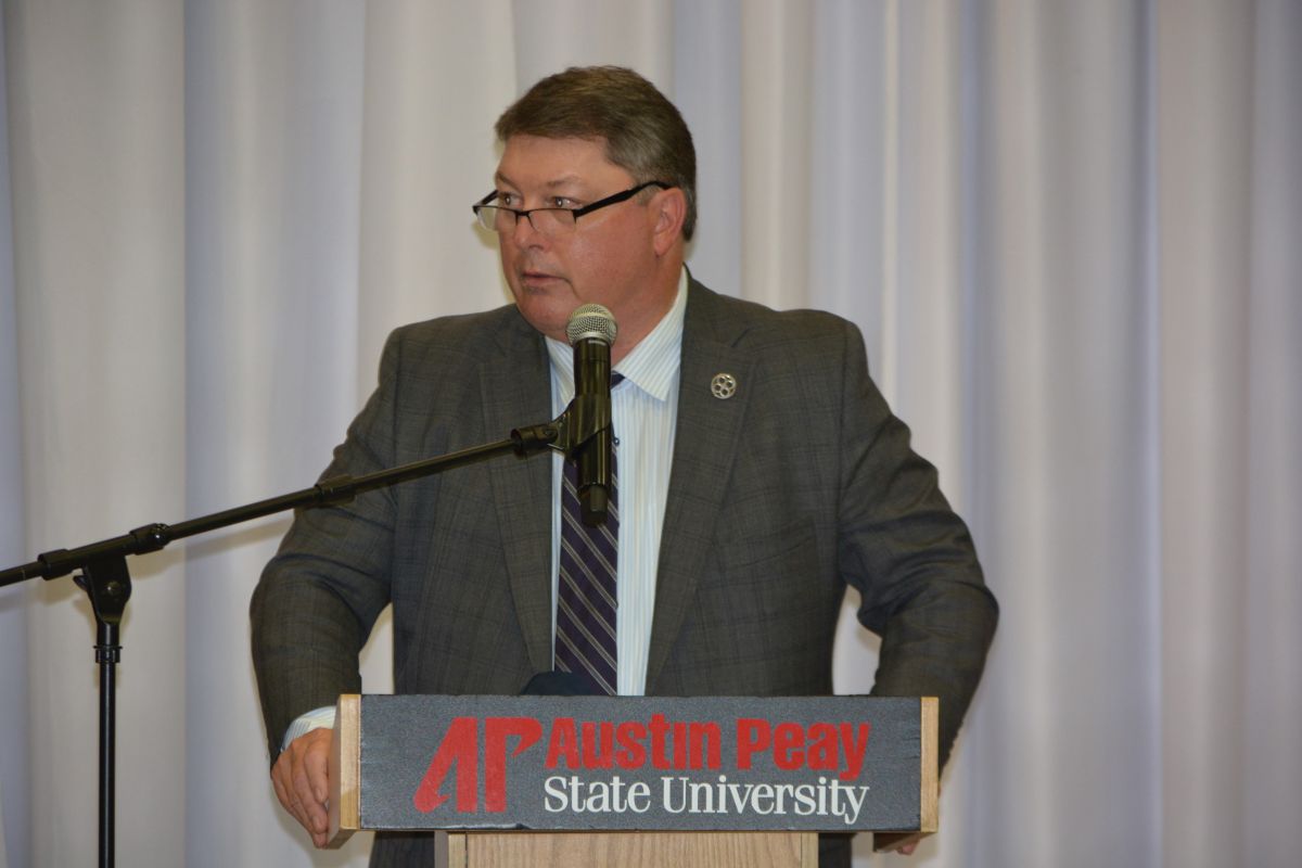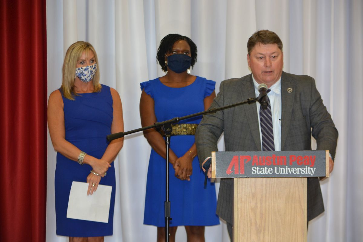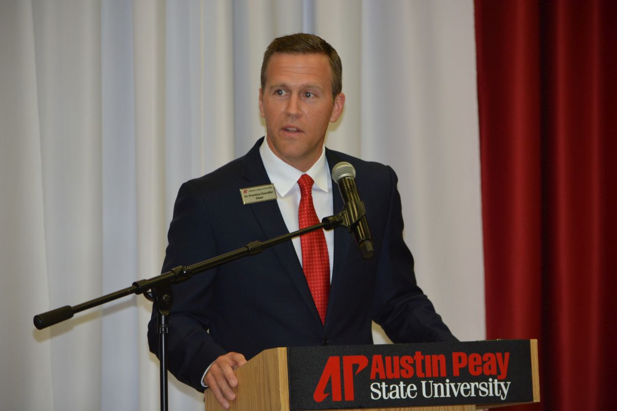 Dr. Prentice Chandler, APSU Dean of Eriksson College of Education at the Elementary-Middle Teacher Residency Signing Day for CMCSS on Friday September 24 2021 (Lee Erwin).