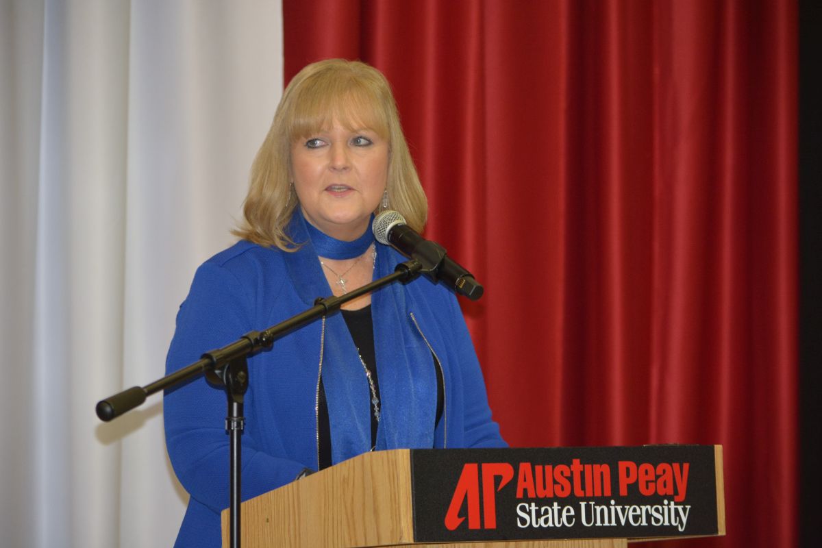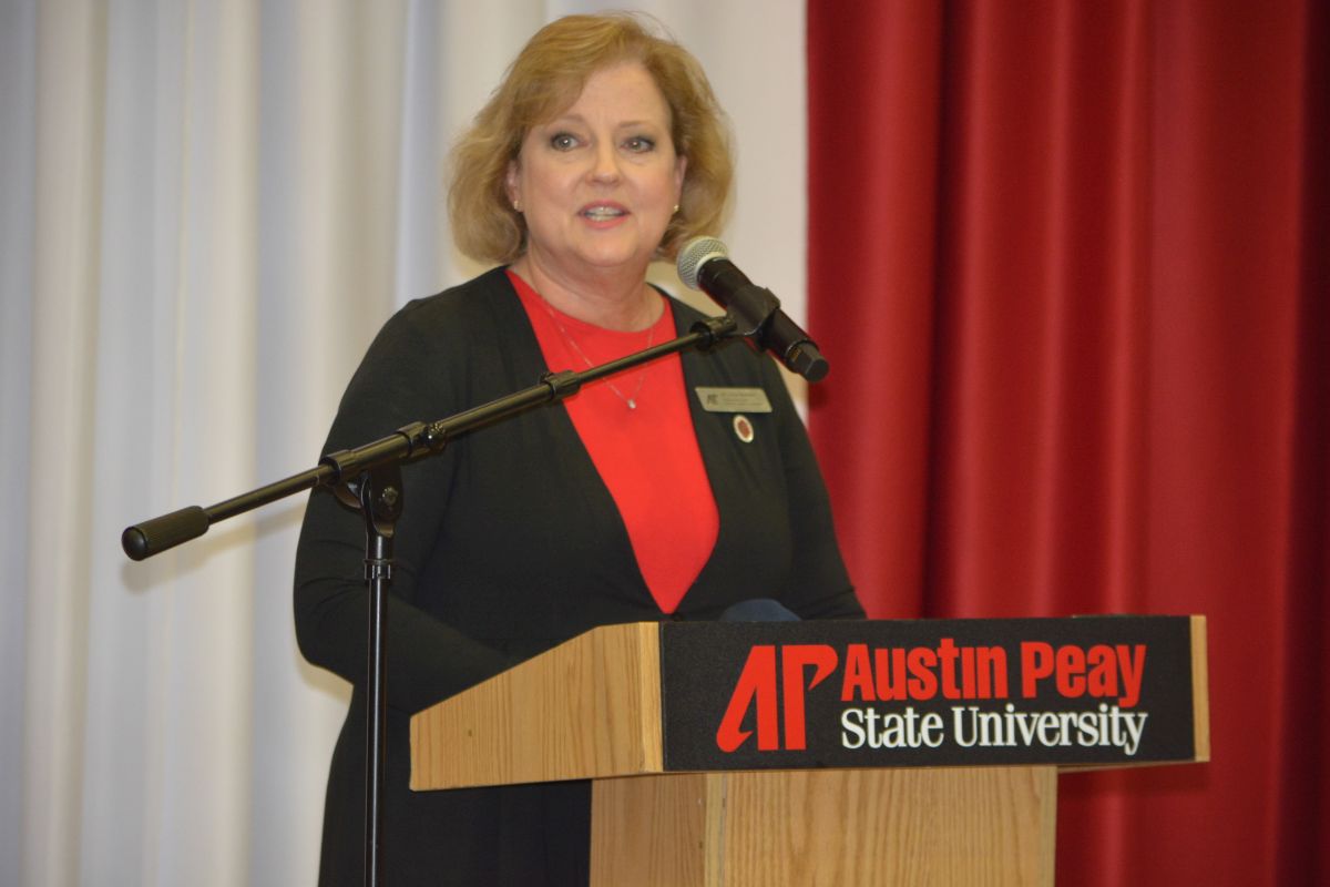 Dr. Lisa Brown, APSU Director of Teacher Education and Partnerships, at the Elementary-Middle Teacher Residency Signing Day for CMCSS on Friday September 24 2021 (Lee Erwin).