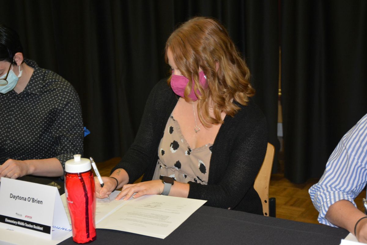 Future educators sign letters of intent to enter the CMCSS Teacher Residency Program on Friday September 24 2021 (Lee Erwin).