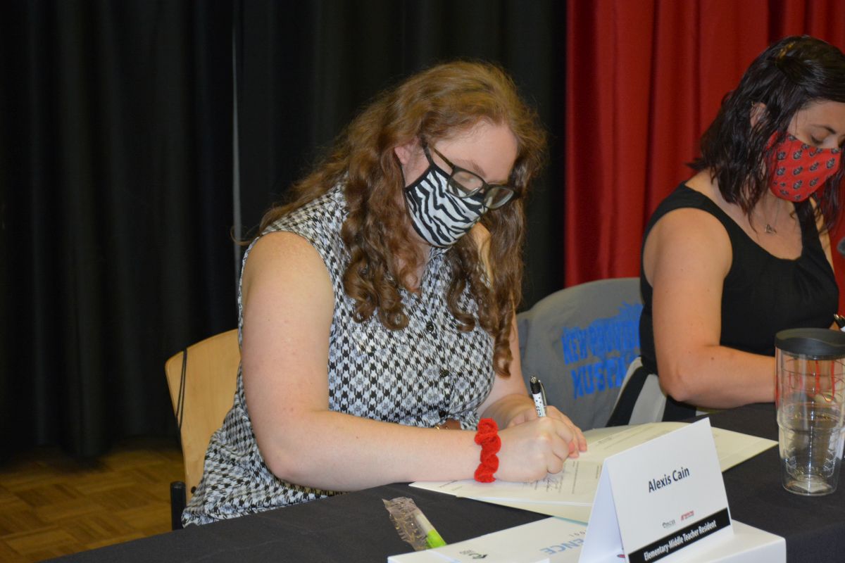 A future educator prepares to sign a letter of intent to enter the CMCSS Teacher Residency Program on Friday September 24 2021 (Lee Erwin).