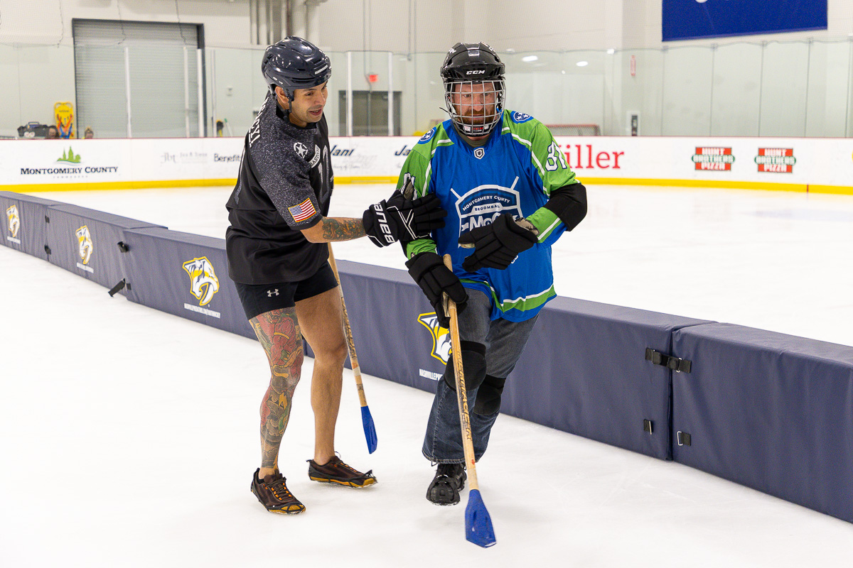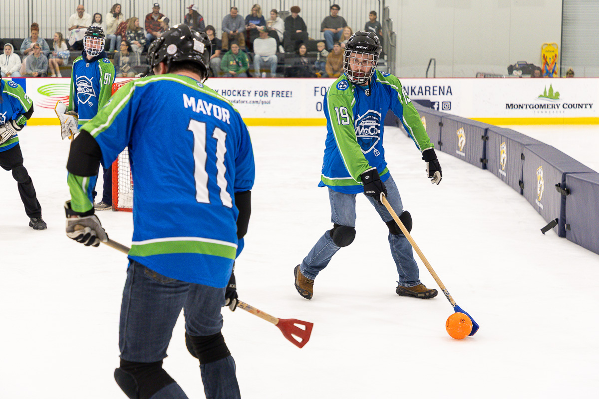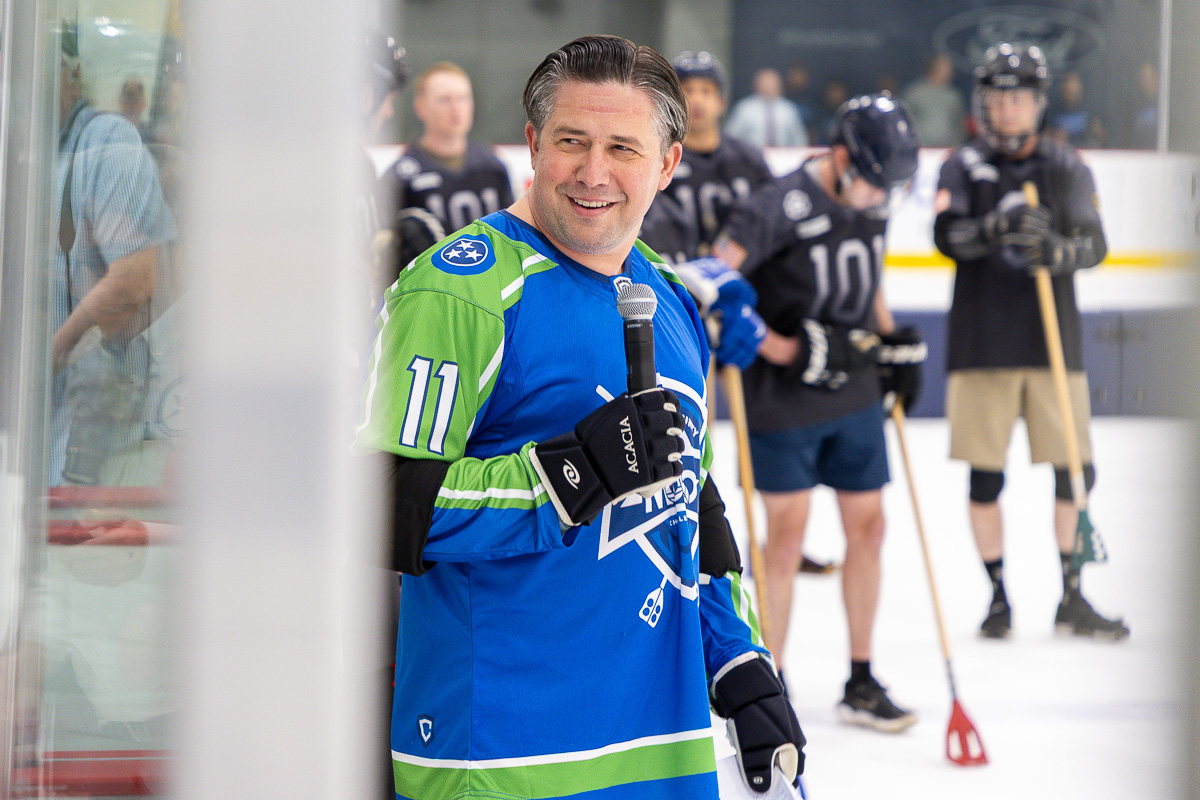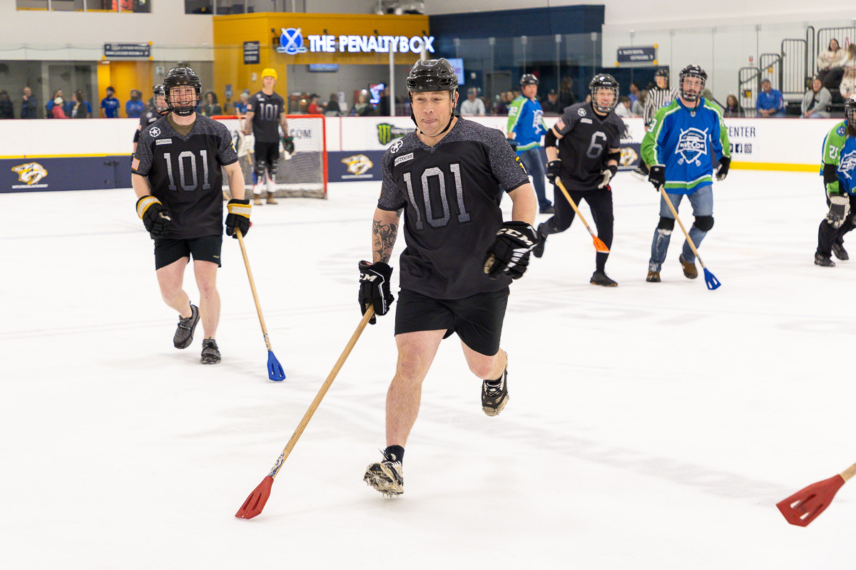 CLARKSVILLE, TN (CLARKSVILLE NOW) – The Mayor vs. the General Broomball game took place at the Ford Ice Center on Thursday, with a fair share of body checks and take-downs. The game featured Montgomery County Mayor Wes Golden and Fort Campbell’s Maj. Gen. Brett Sylvia in a friendly competition.