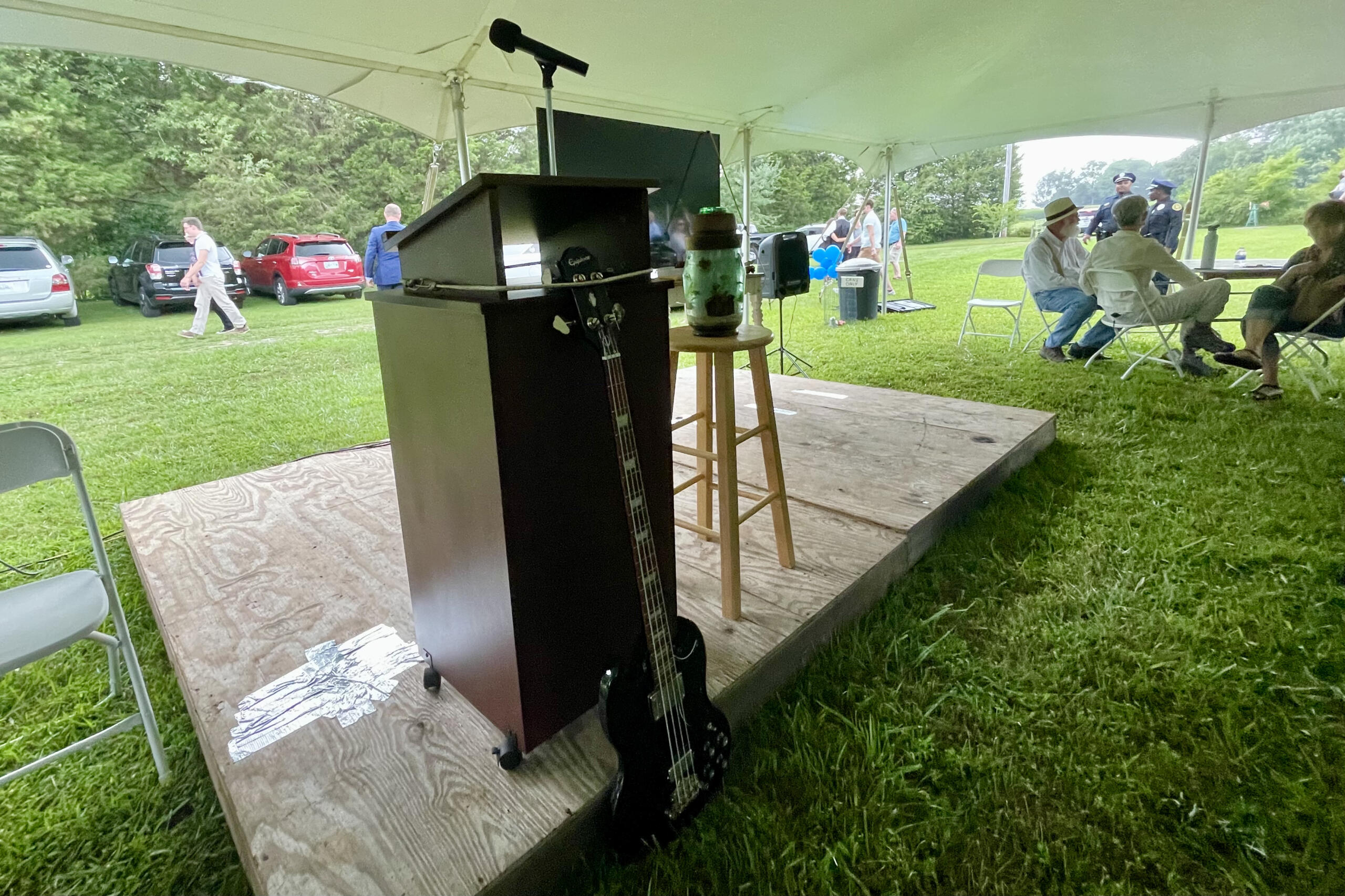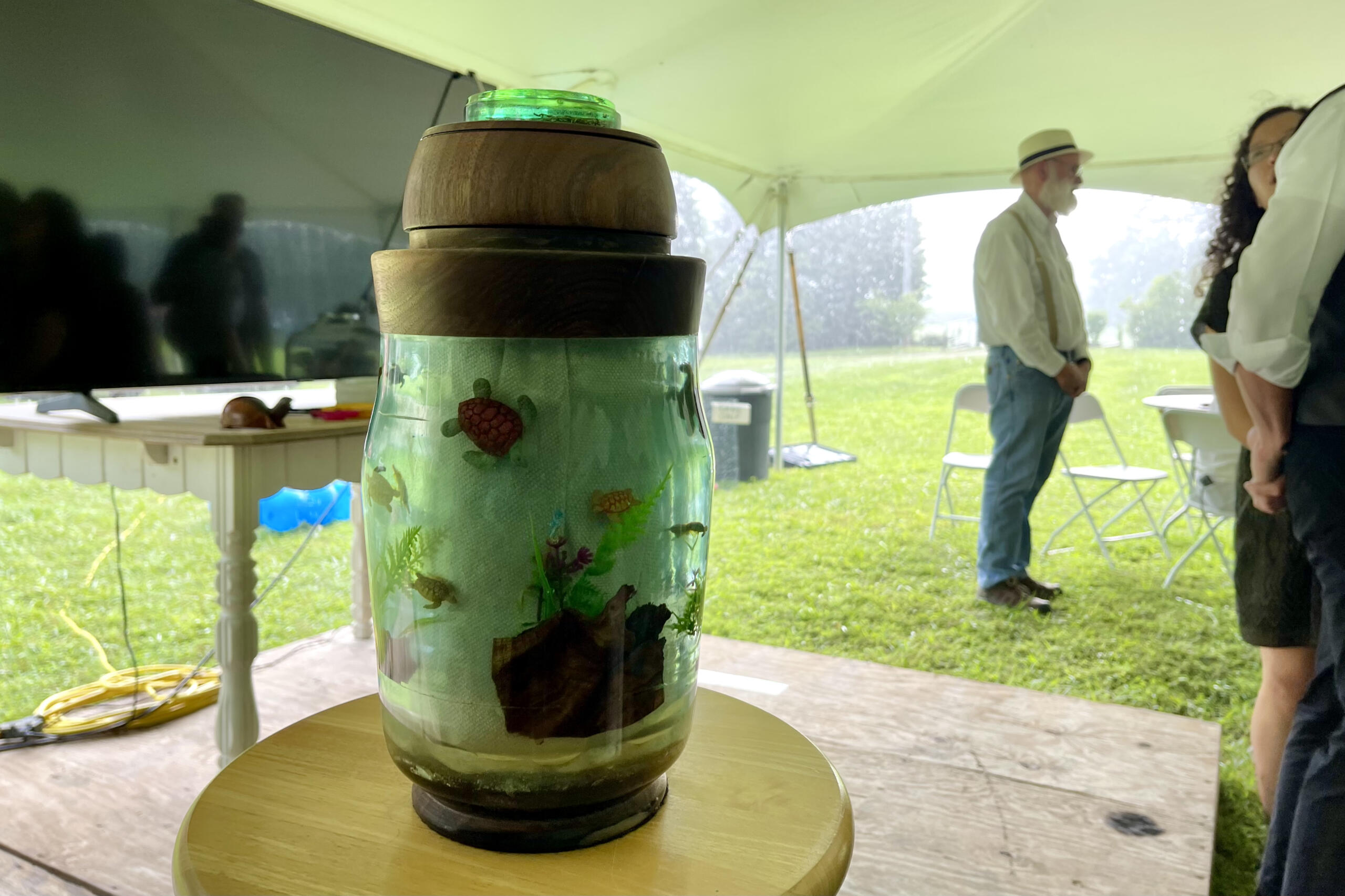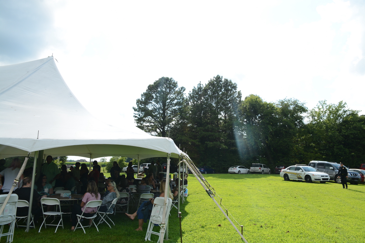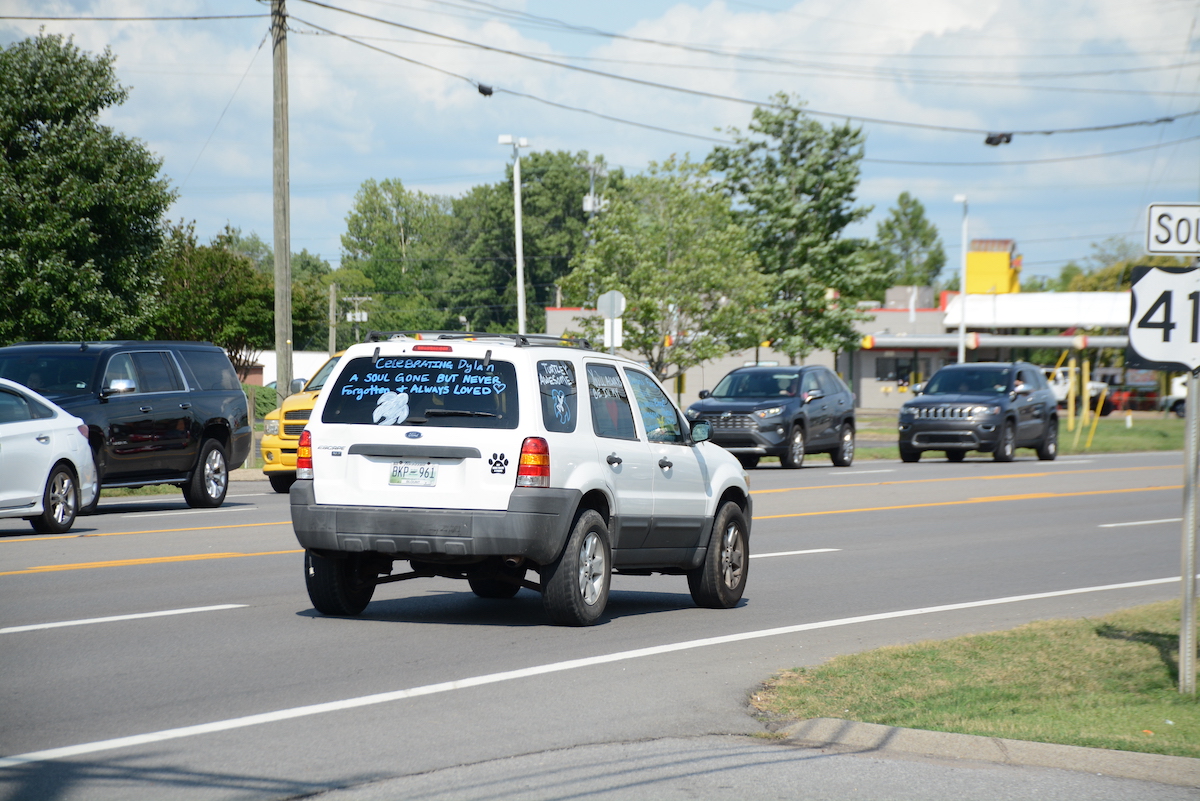 Cars decorated with sea turtles and music notes followed the motorcade onto U.S. Highway 41A to a private location in the Shady Grove area, where a white canopy tent stood.