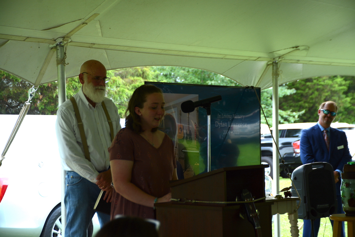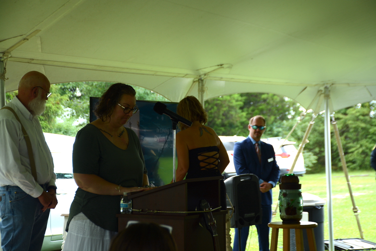 Susan Lawrence, Dylan’s “bonus mom,” returned to the lectern to read a passage from one of Dylan’s journals with his advice to those who are looking for answers in his death.