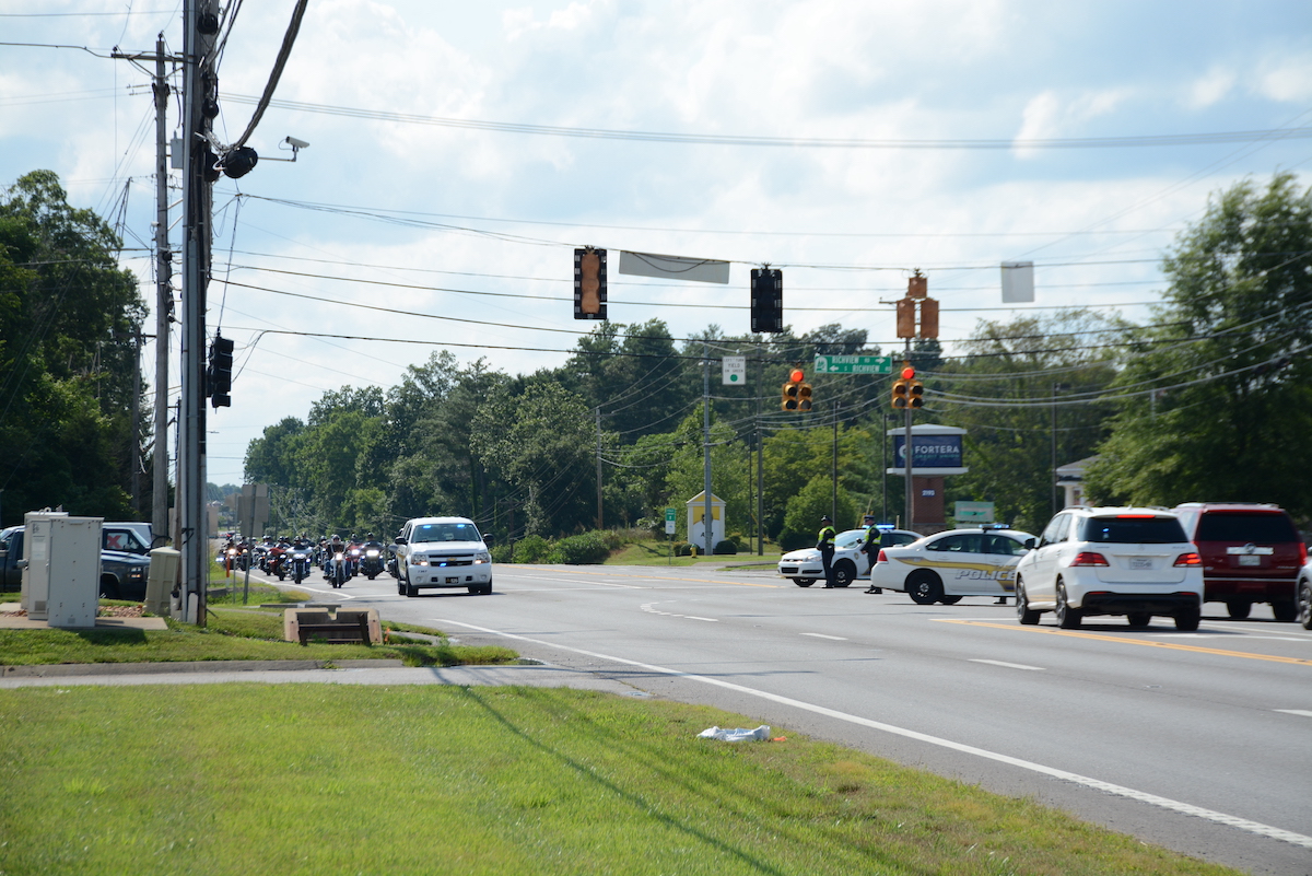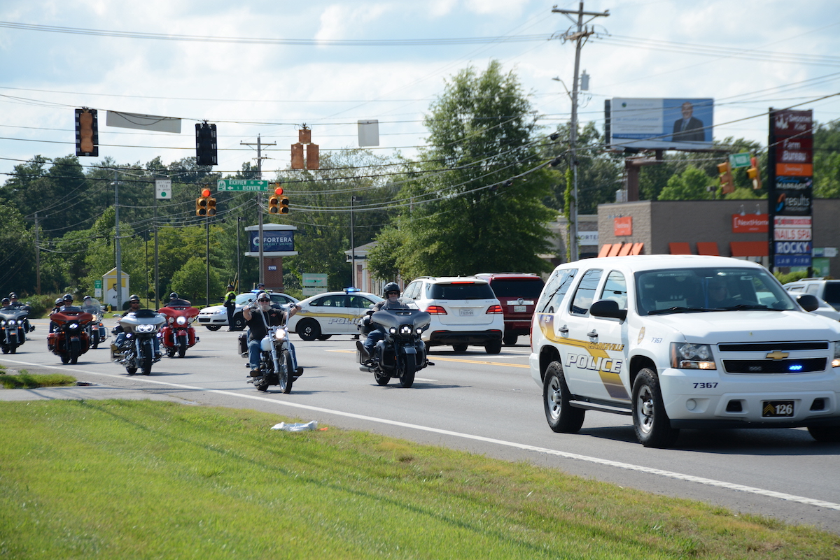 At 4 p.m. on Saturday, a massive procession headed down Madison Street from Neal-Tarpley-Parchman Funeral Home, led Clarksville Police patrol vehicles and about 30 motorcycles.