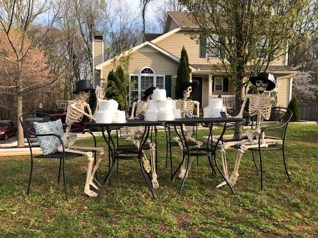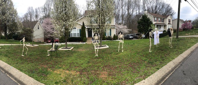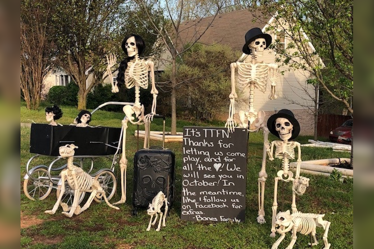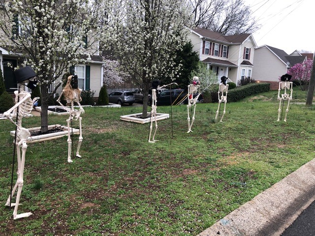 CLARKSVILLE, Tenn. (CLARKSVILLENOW)- The Bones family, a family of skeletons known for their comical antics each Halloween, took a week from “vacation” to raise the spirits of Clarksville residents who are sheltered in place during the coronavirus pandemic.