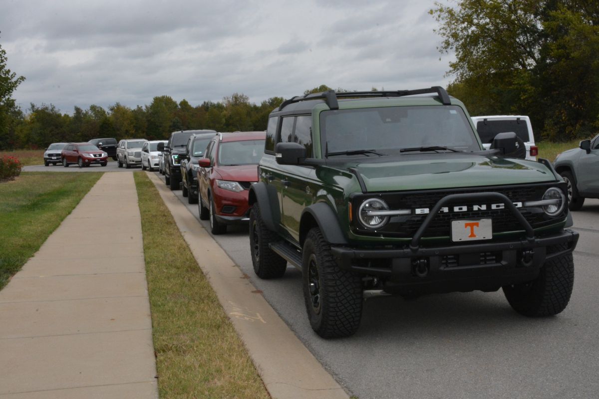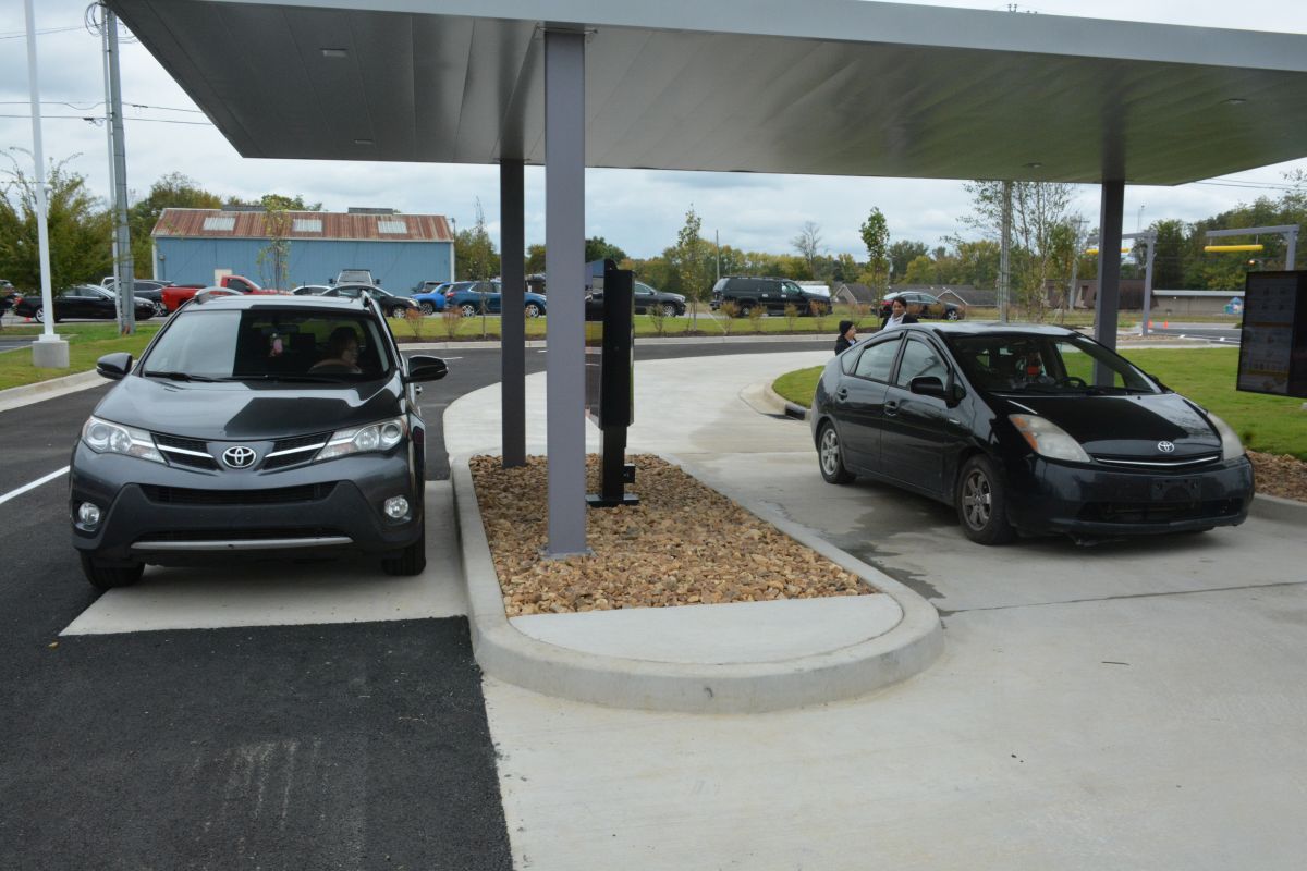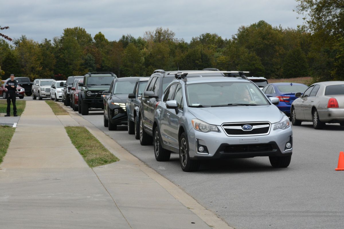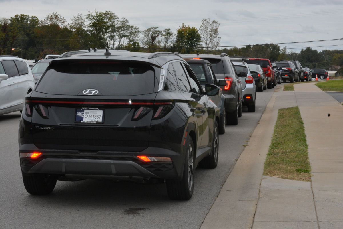 Vehicles begin to line up at the drive-thru at the opening of the new Whataburger on Fire Station Road on Oct. 16, 2023. (Lee Erwin)