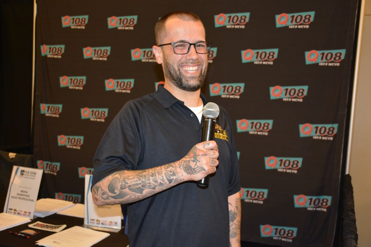 Beaver Country 100.3 morning air personality Chris Brooks, at Valor Hall in Oak Grove on the first day of the Mega Job Fair with 5 Star Media on, Apr. 12, 2022. (Lee Erwin).