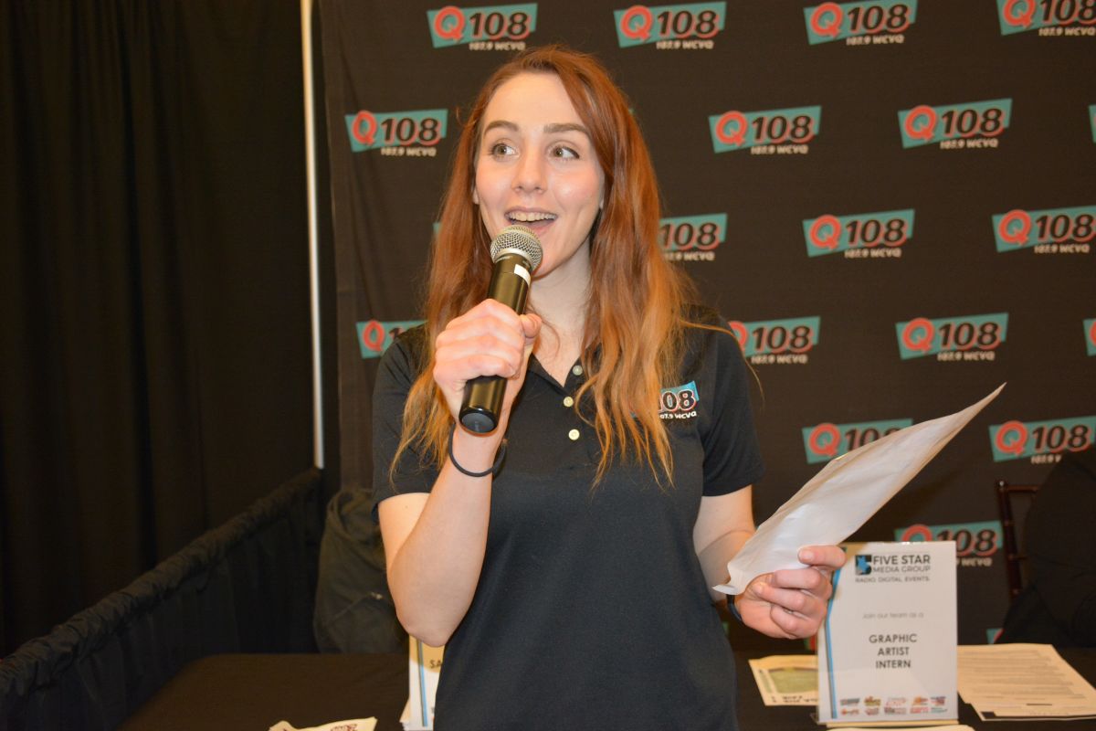 Q-108 air personality Katie Jay at Valor Hall in Oak Grove on the first day of the Mega Job Fair with 5 Star Media on, Apr. 12, 2022. (Lee Erwin).