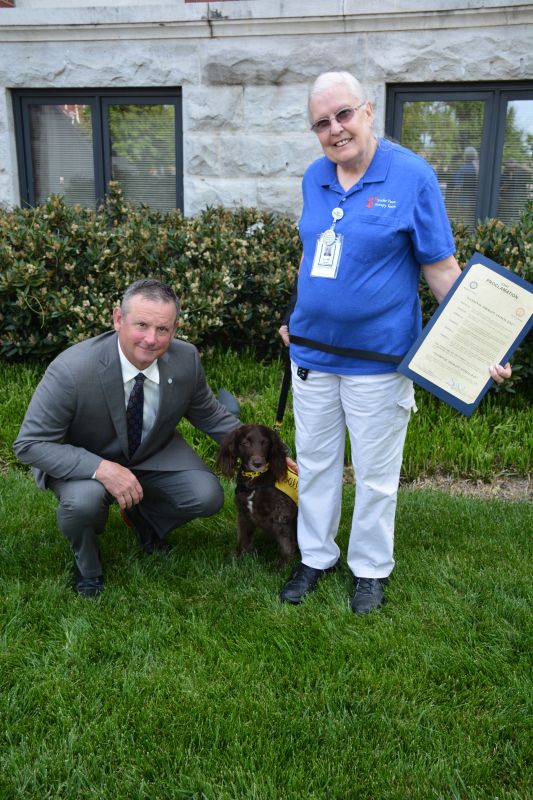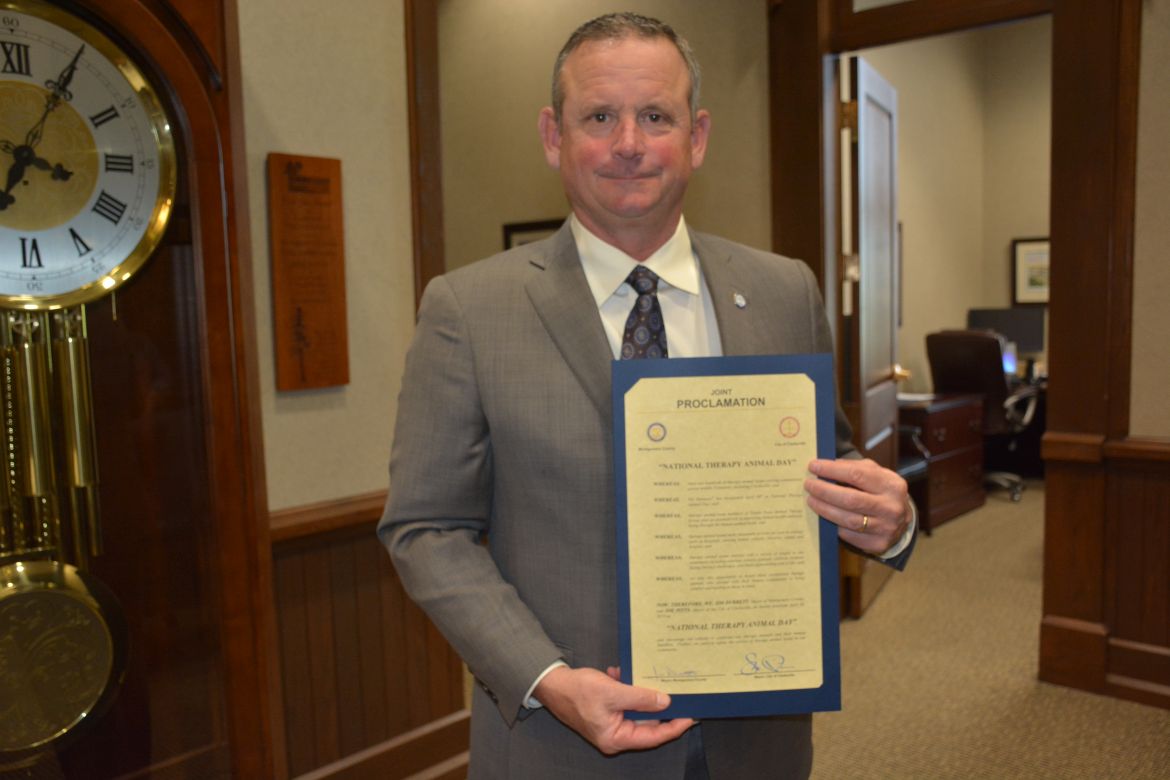 The joint proclamation recognizing April 30 as Therapy Animal Day was presented by Montgomery County Mayor Jim Durrett and was also signed by Clarksville Mayor Joe Pitts, who was unable to attend.