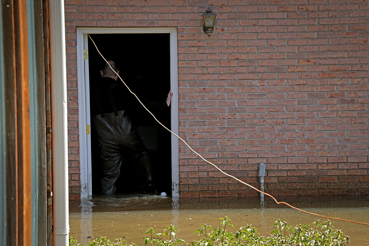 On Wednesday, Thomas and Kristen returned to their submerged home to retrieve some of their belongings. They donned their waders, carried an inflatable raft into the murky floodwaters and floated toward their house.